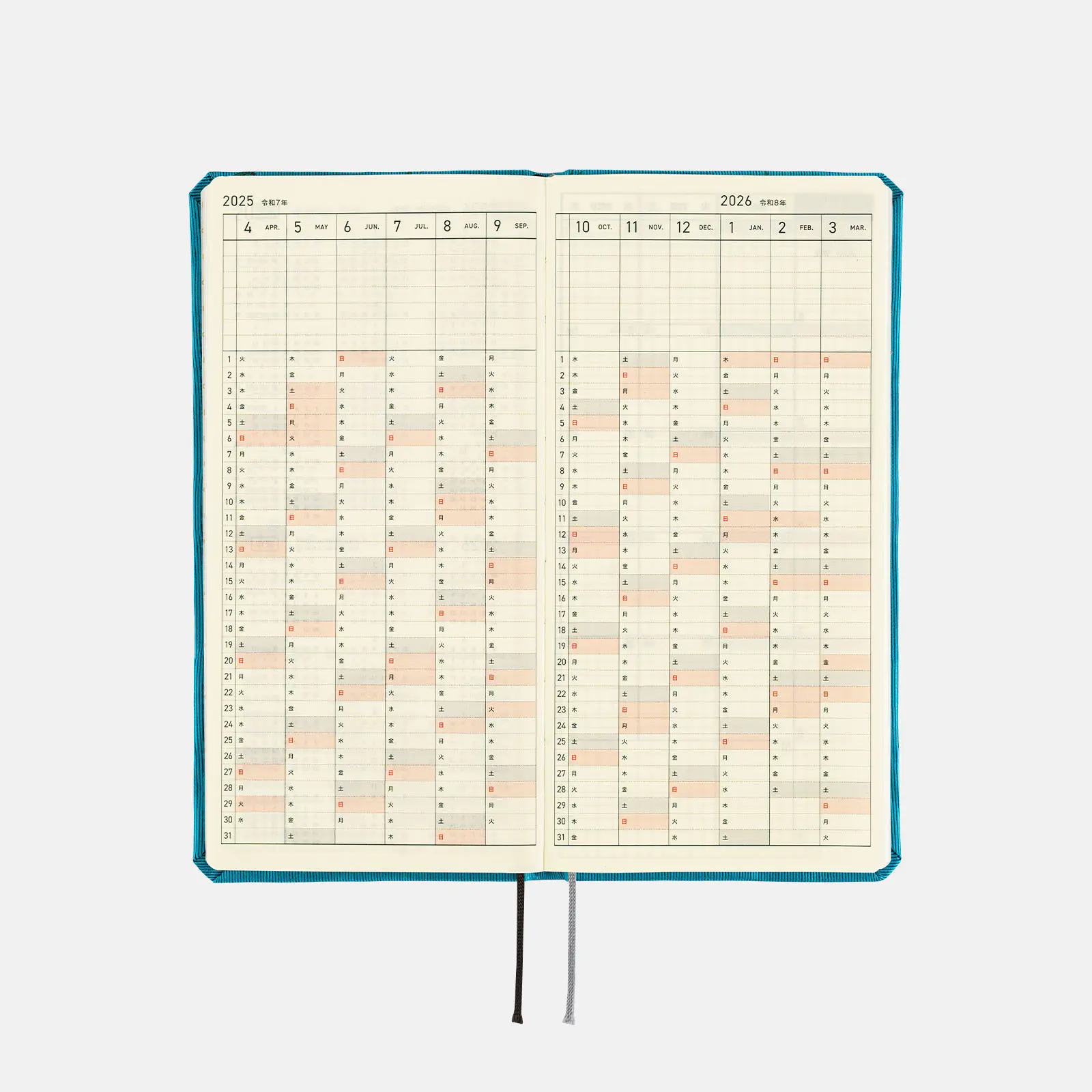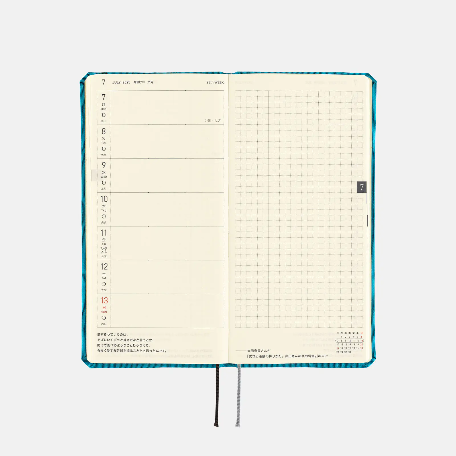 | 紙質・製本 | 薄くて軽く、裏抜けの少ないトモエリバー(手帳専用紙)/糸かがり製本 |