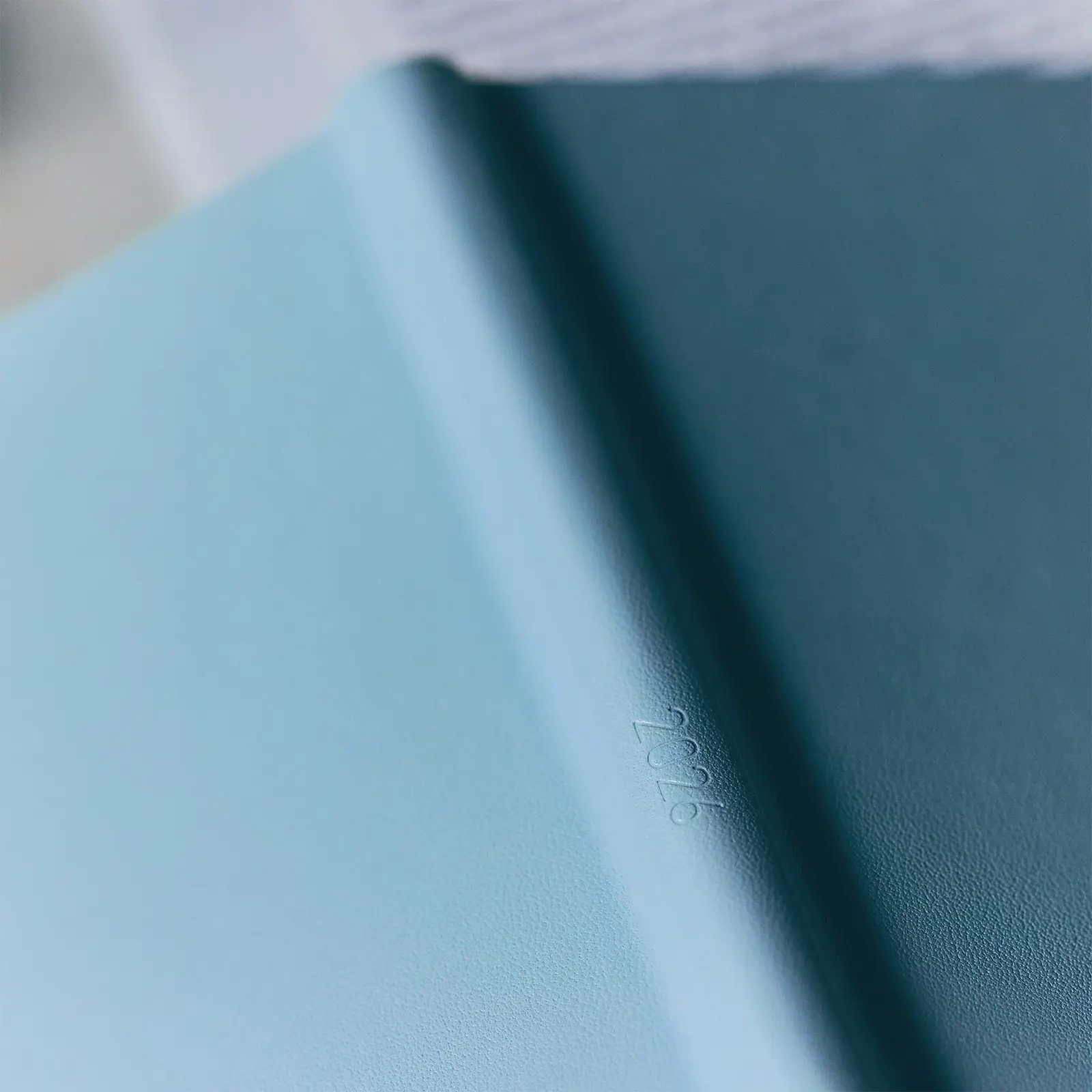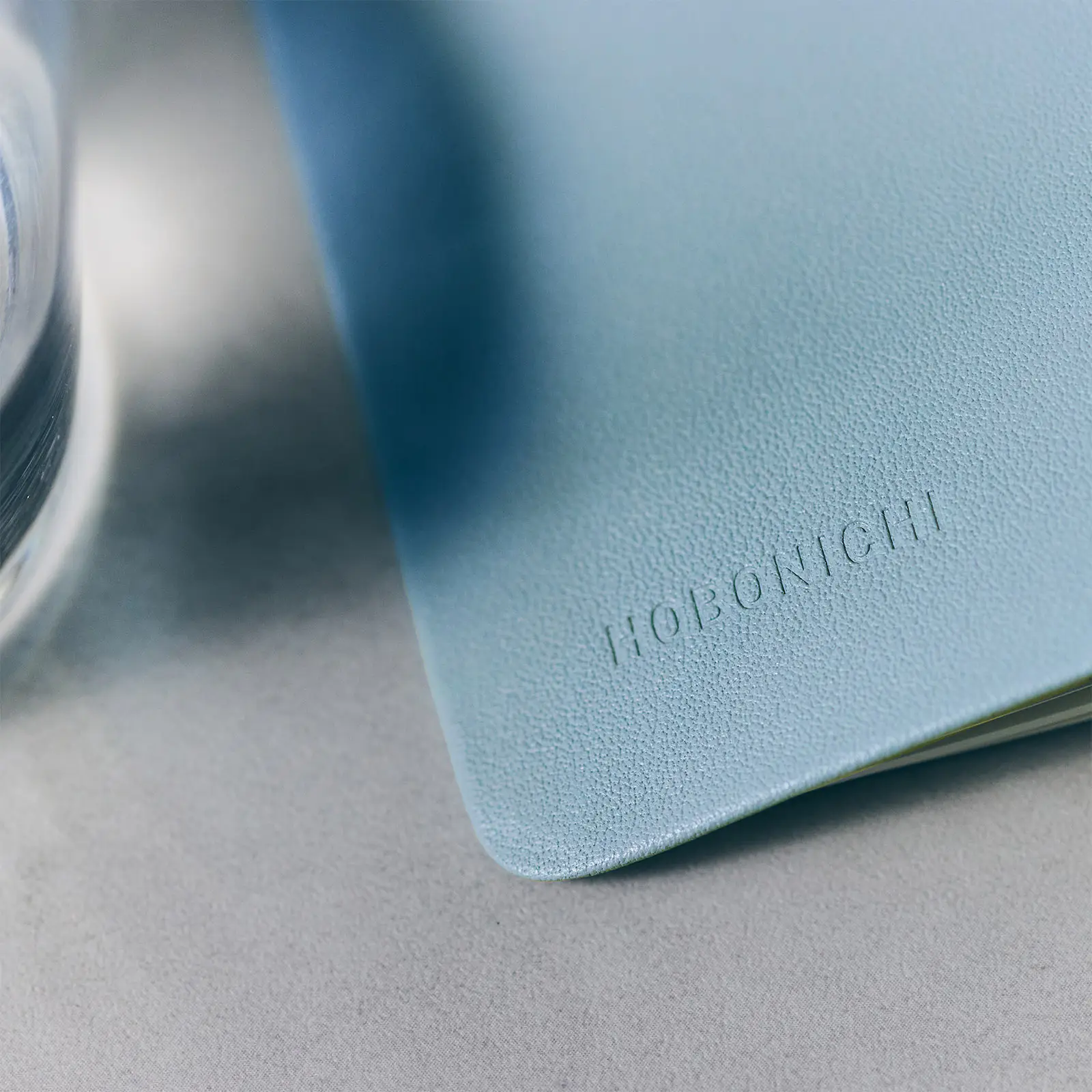 あわい水色に染めた革を使用しています。