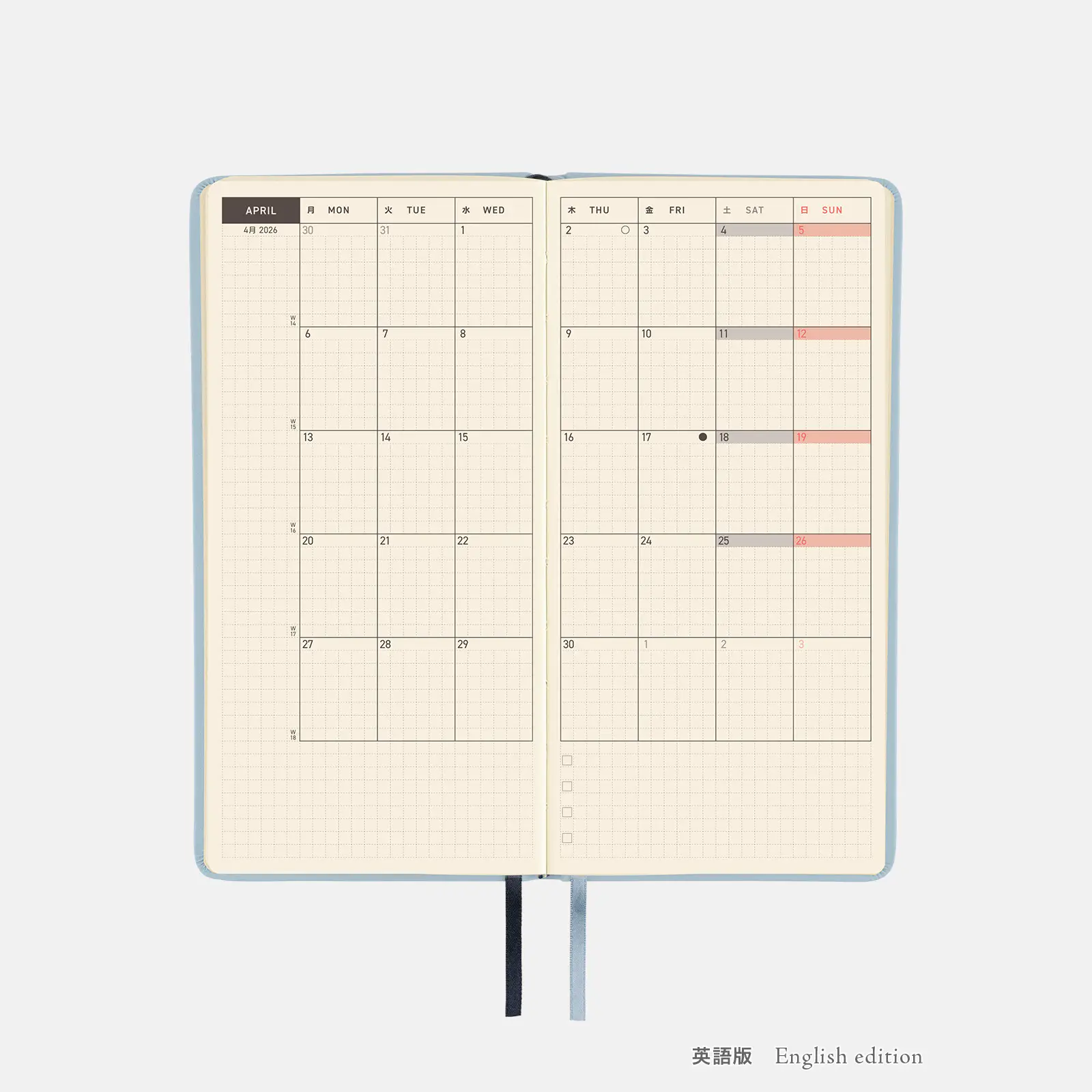 週間ダイアリー2025年12月1日〜2027年1月3日(全114ページ)