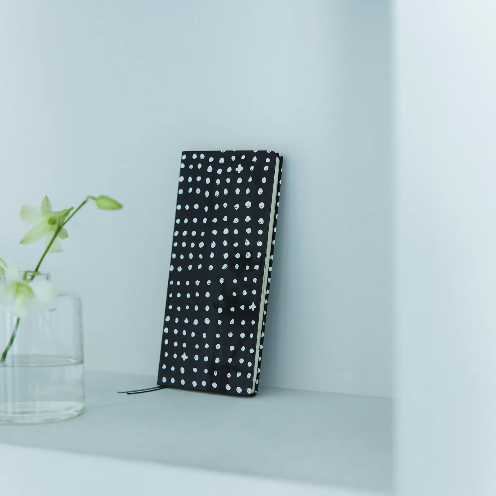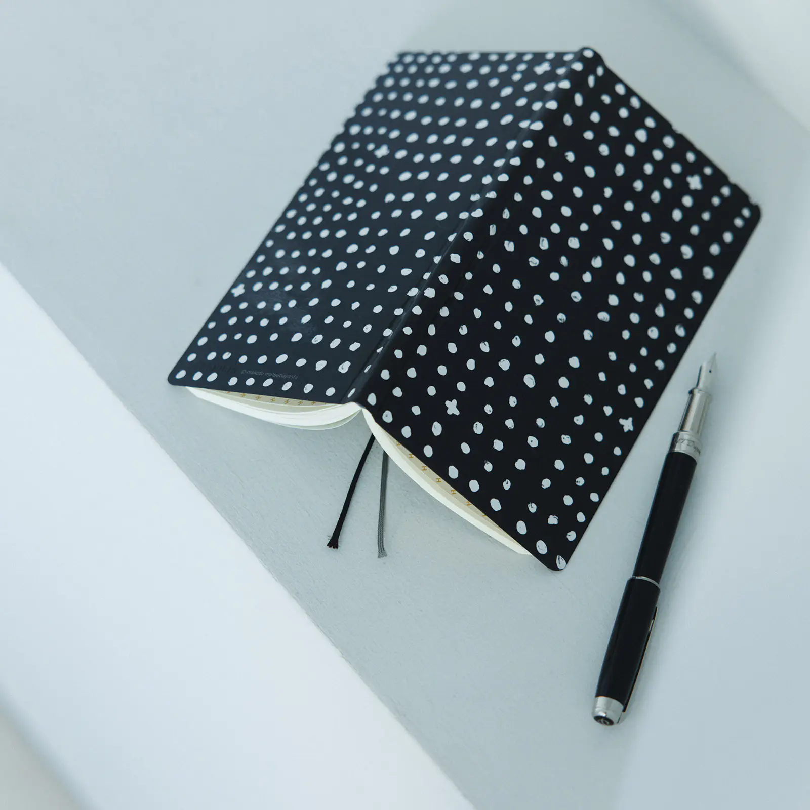 黒地にのびのびとした筆致で描かれた白いドット。