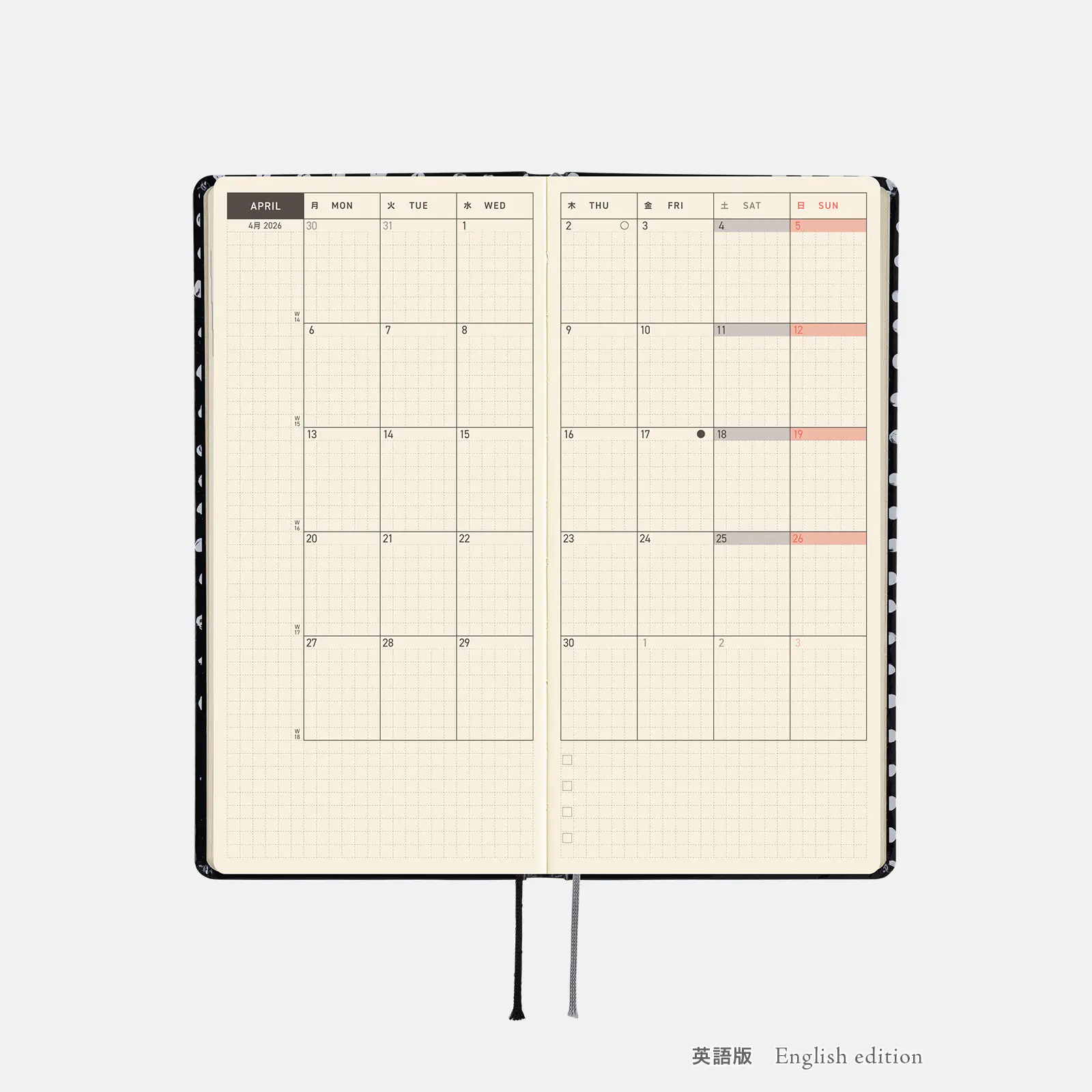 松林誠dot[weeks/週間レフト/日本語版・英語版/1月/月曜はじまり]