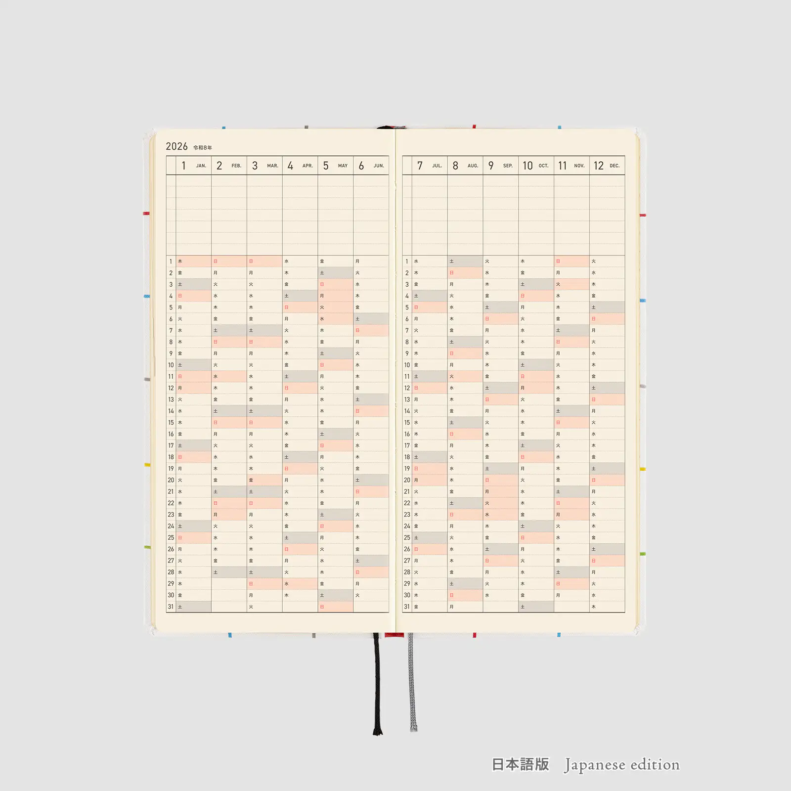 表紙の西暦「2026」は、赤で箔押ししました。