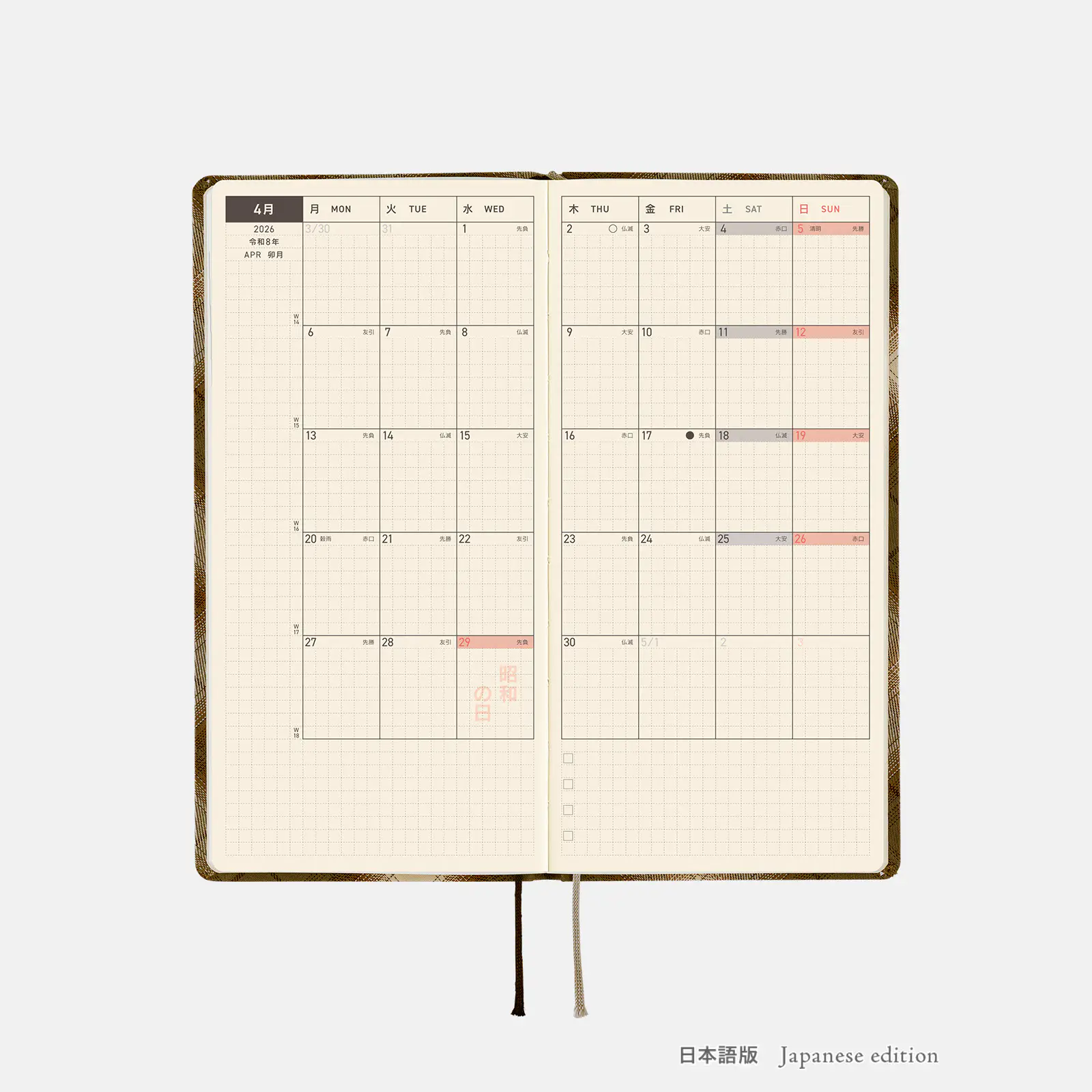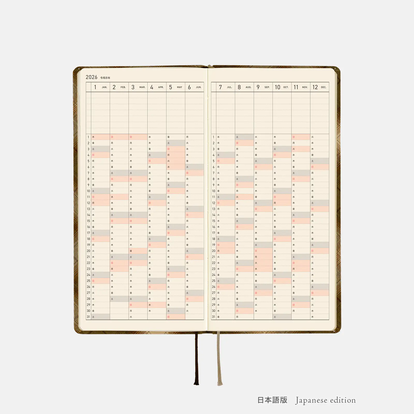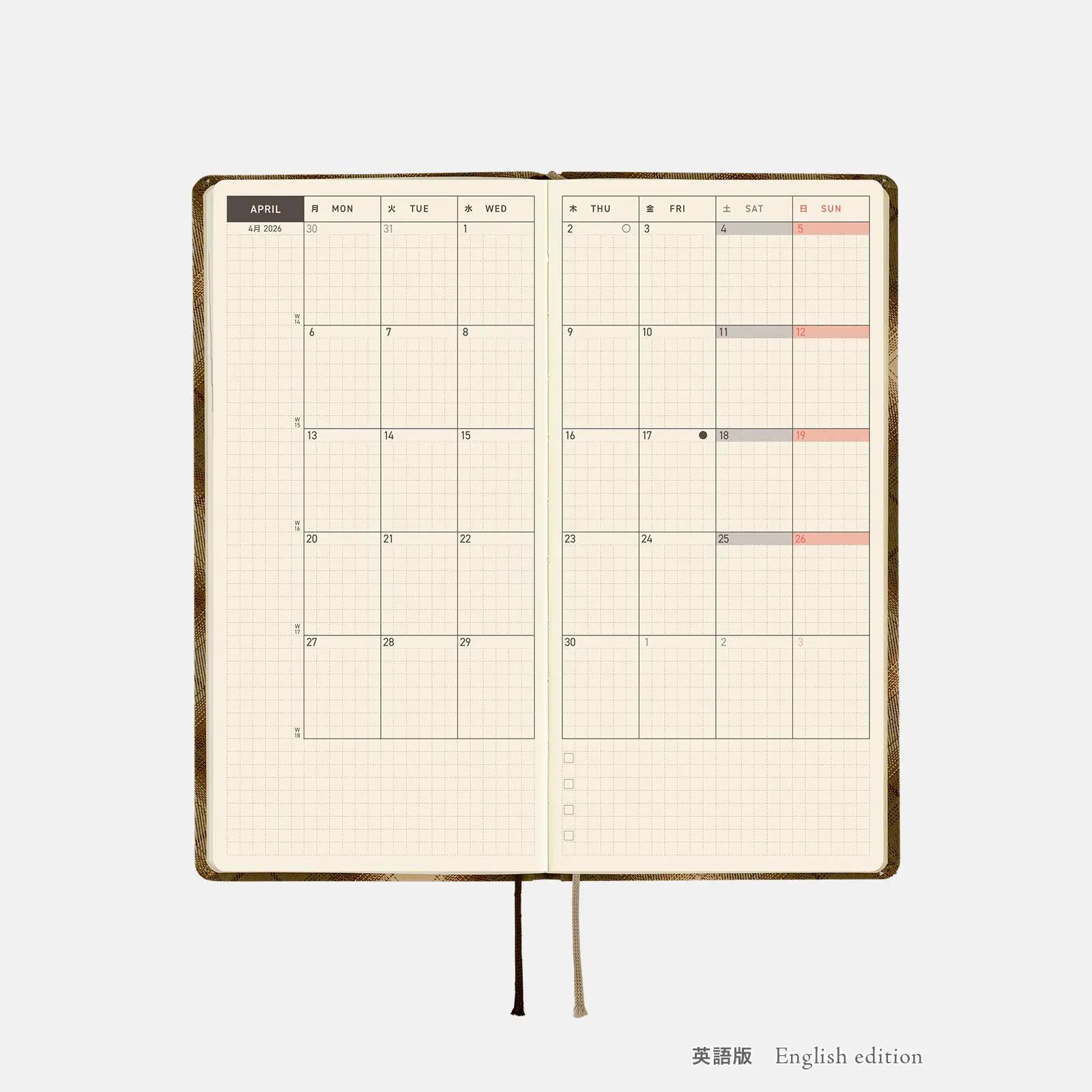 | 紙質・製本 | 薄くて軽く、なめらかな書き心地のトモエリバー(手帳専用紙)/糸かがり製本 |