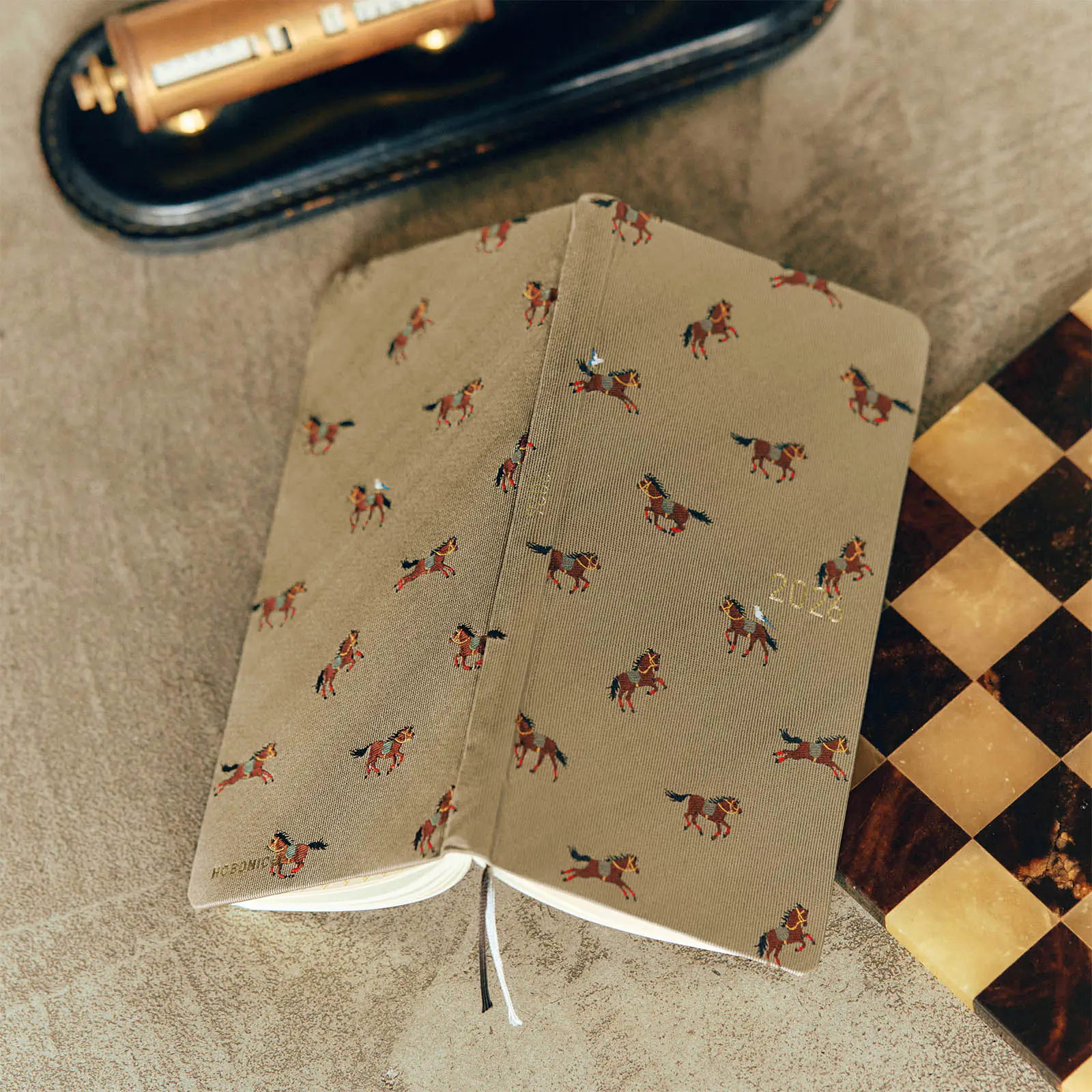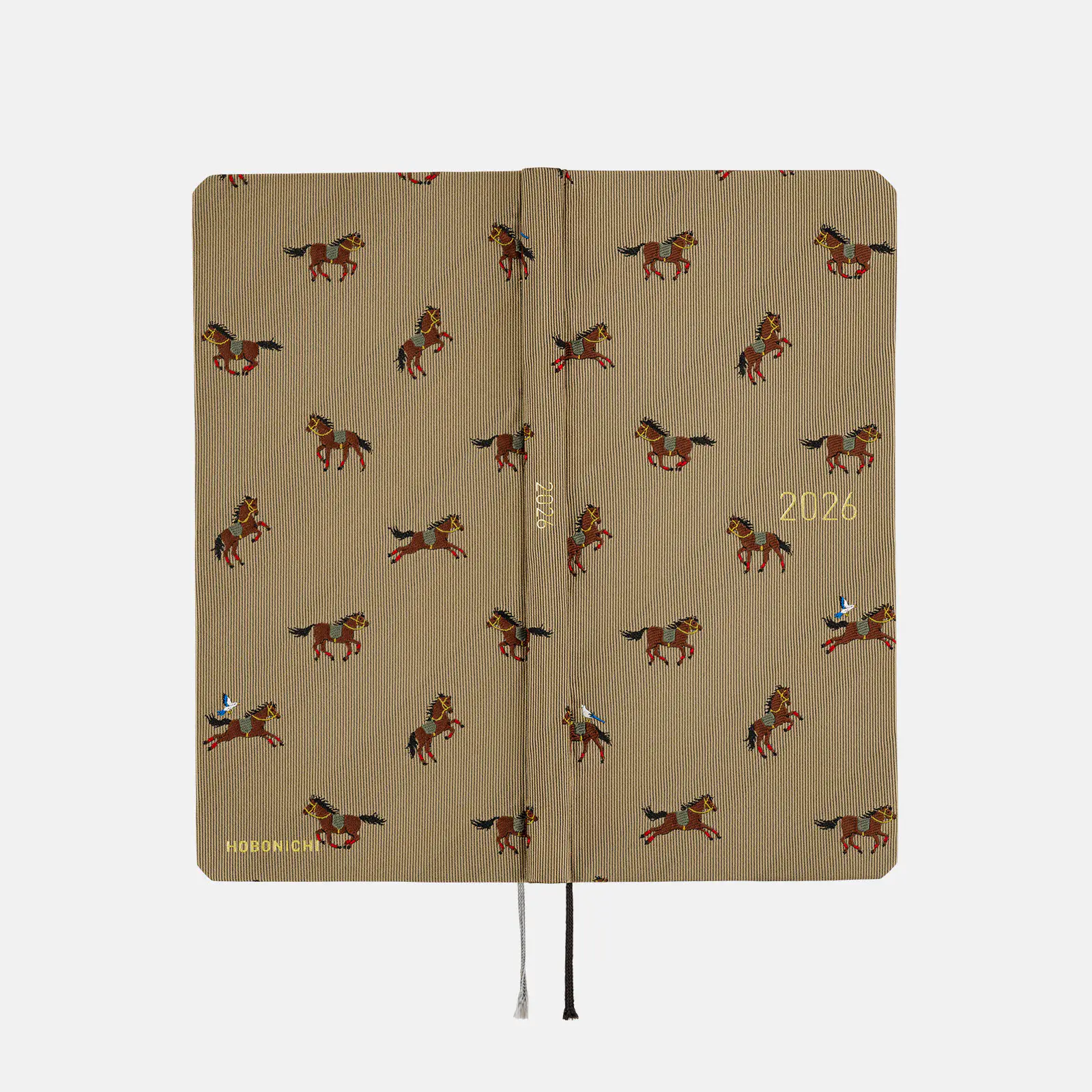 「駆ける馬」の柄では、シックなベージュの表紙に