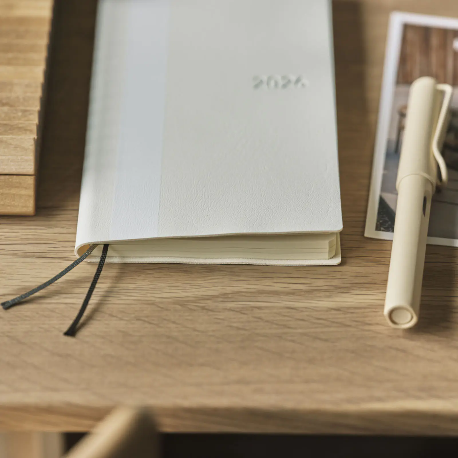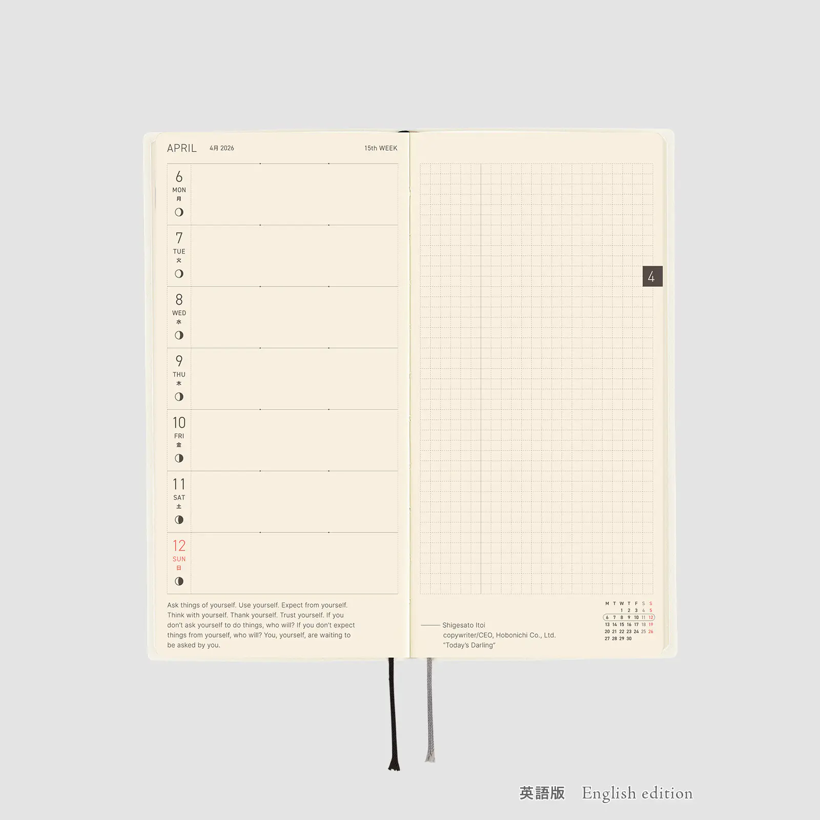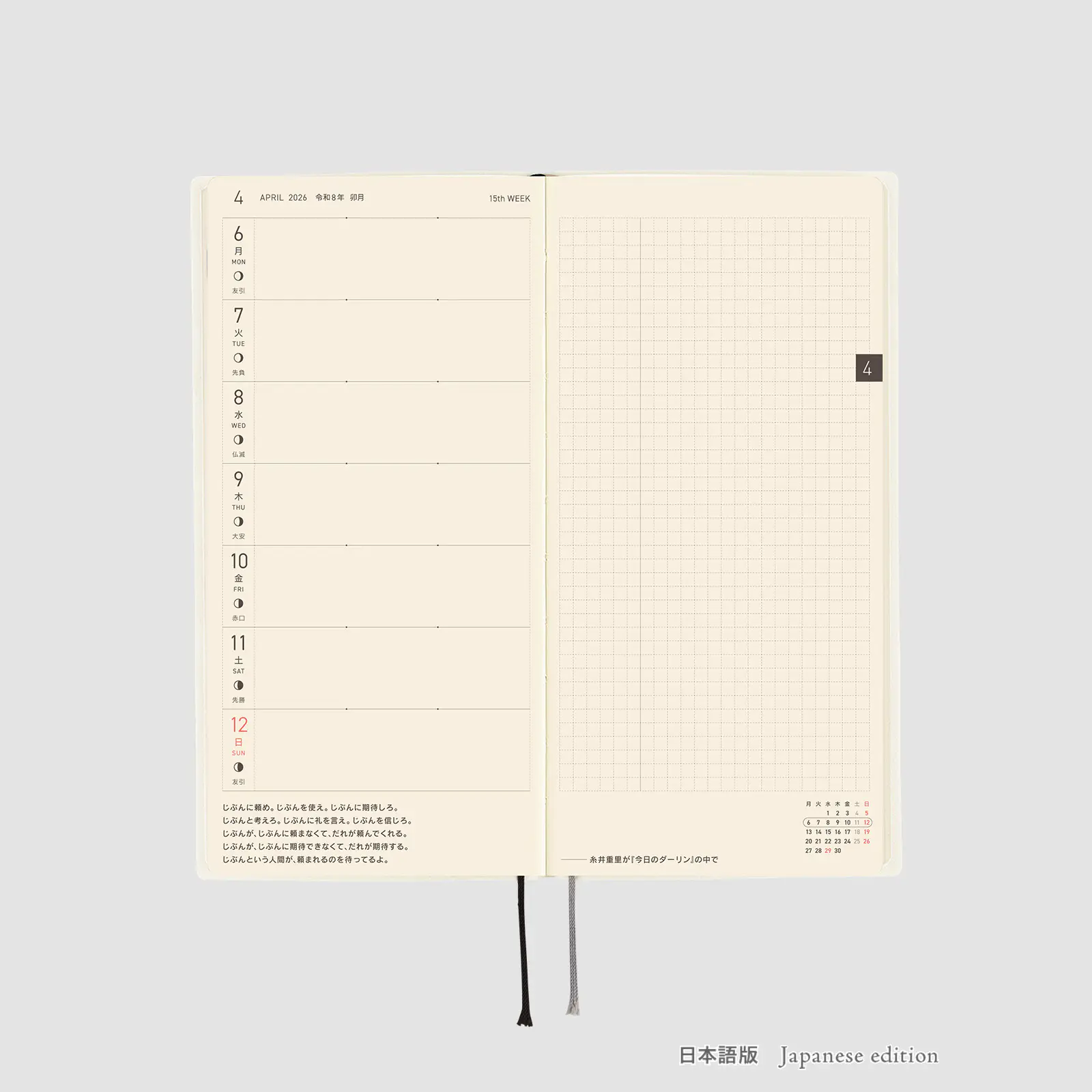 ホワイトラインアイボリー[weeks/週間レフト/日本語版・英語版/1月/月曜はじまり]