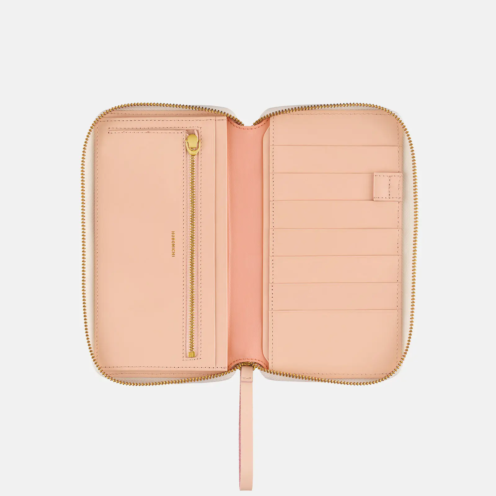 内側にもおなじペールピンクの革を使い、