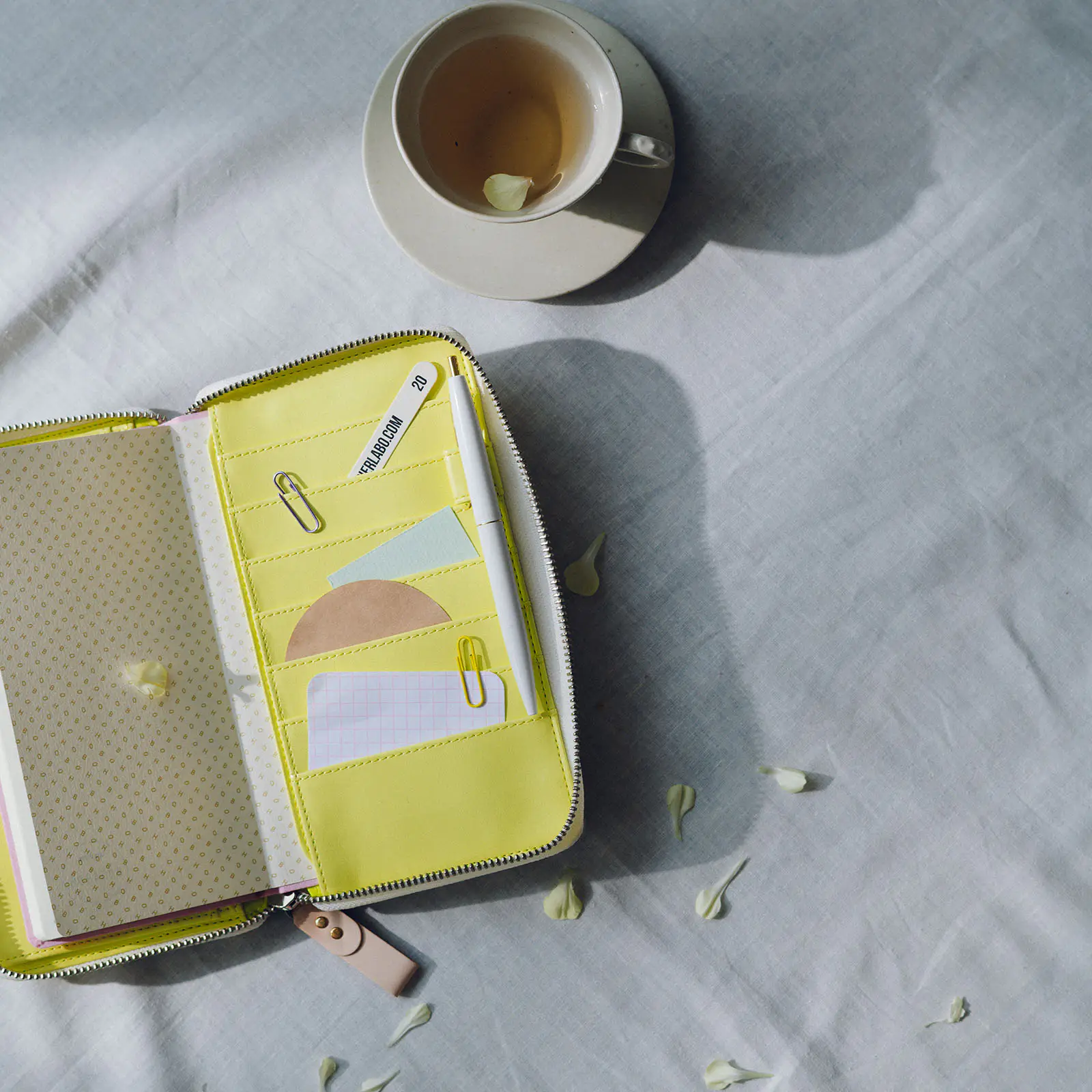 見開きで1週間の予定+メモが見られる週間手帳weeksのメモページを3倍に増やした手帳。スリムな見た目はそのままに、たっぷり書いたり貼ったり自由な発想で使えます。