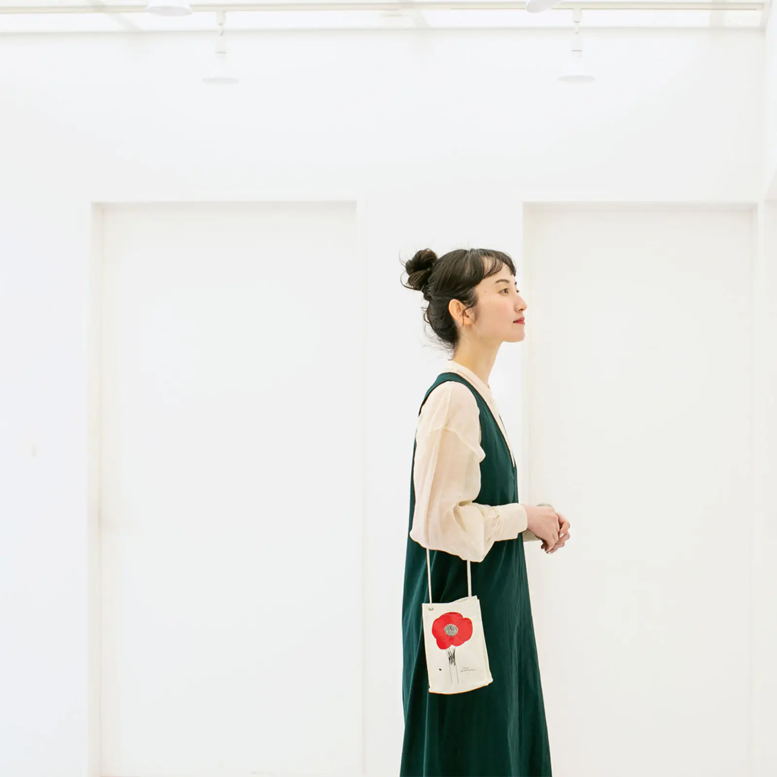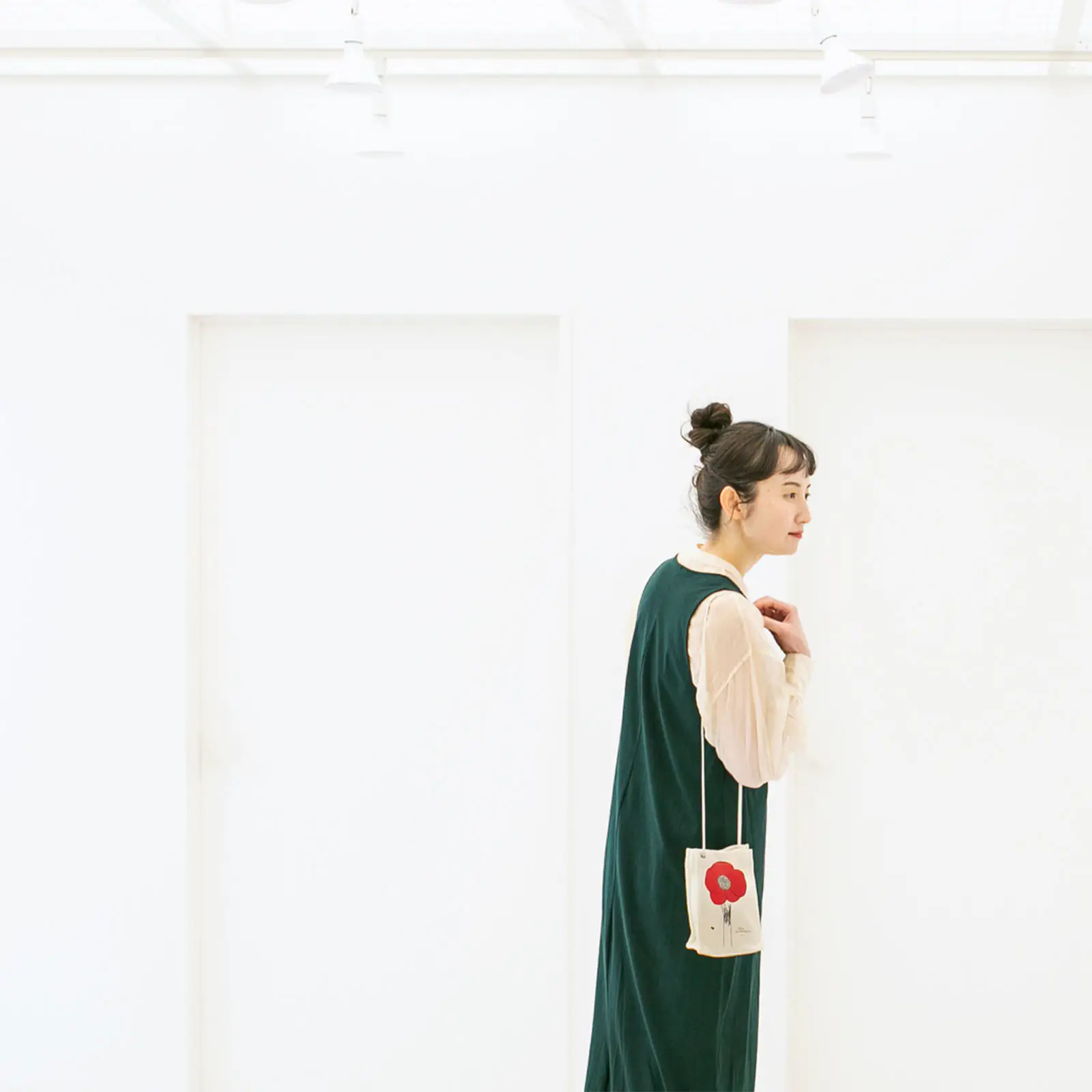 ちょっと近所へ出かけるときのミニショルダーとして。買い物などで帰りに荷物が増えそうなら、小さくたたんだエコバッグを入れておくと◎。