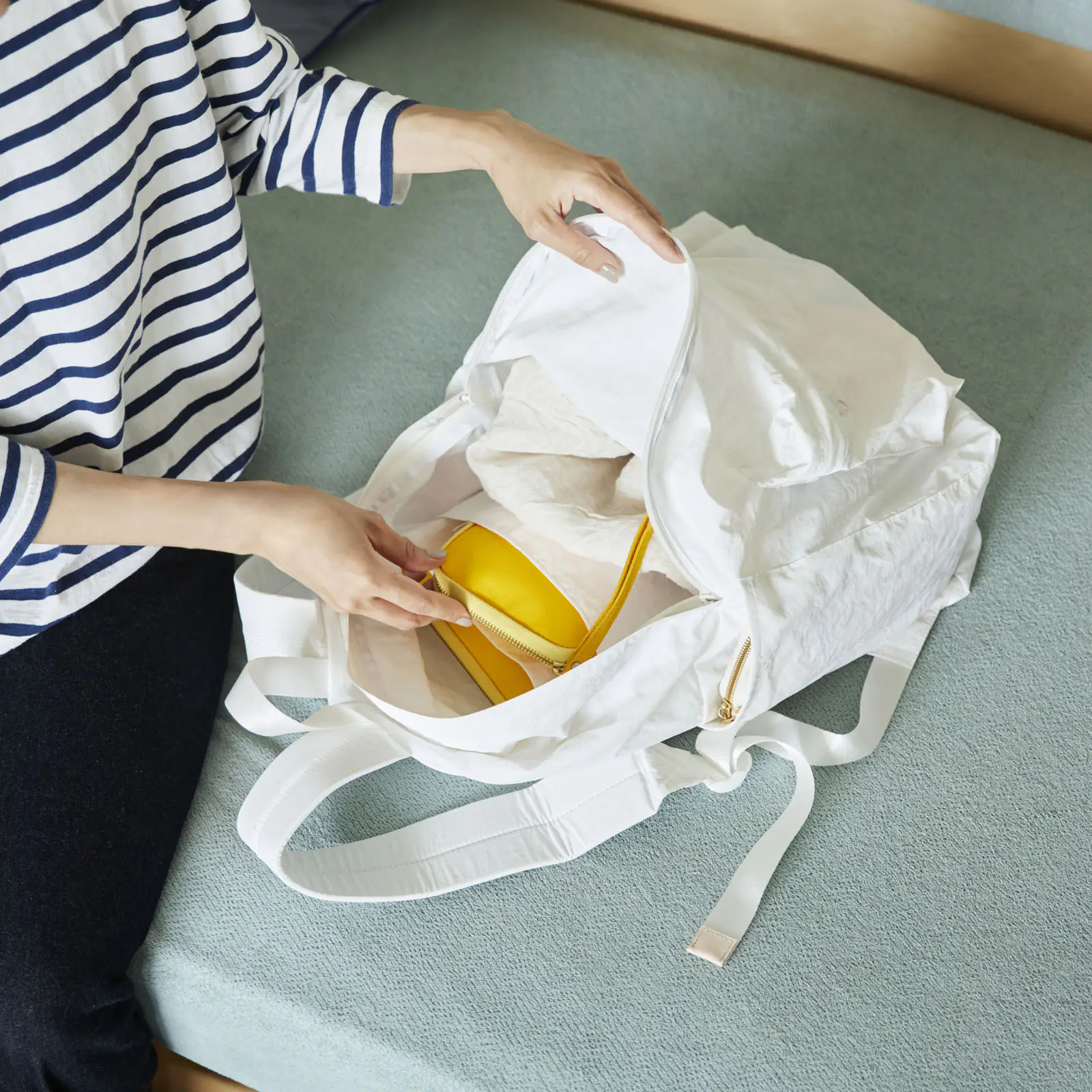 丈夫なナイロン製で、旅行や買い物のサブバッグにも、