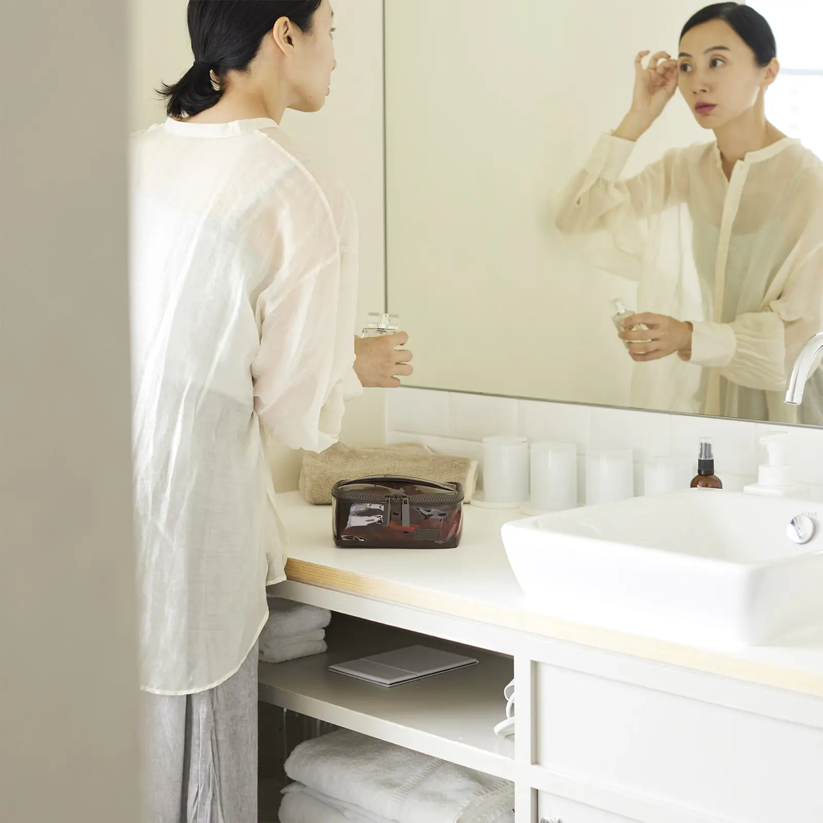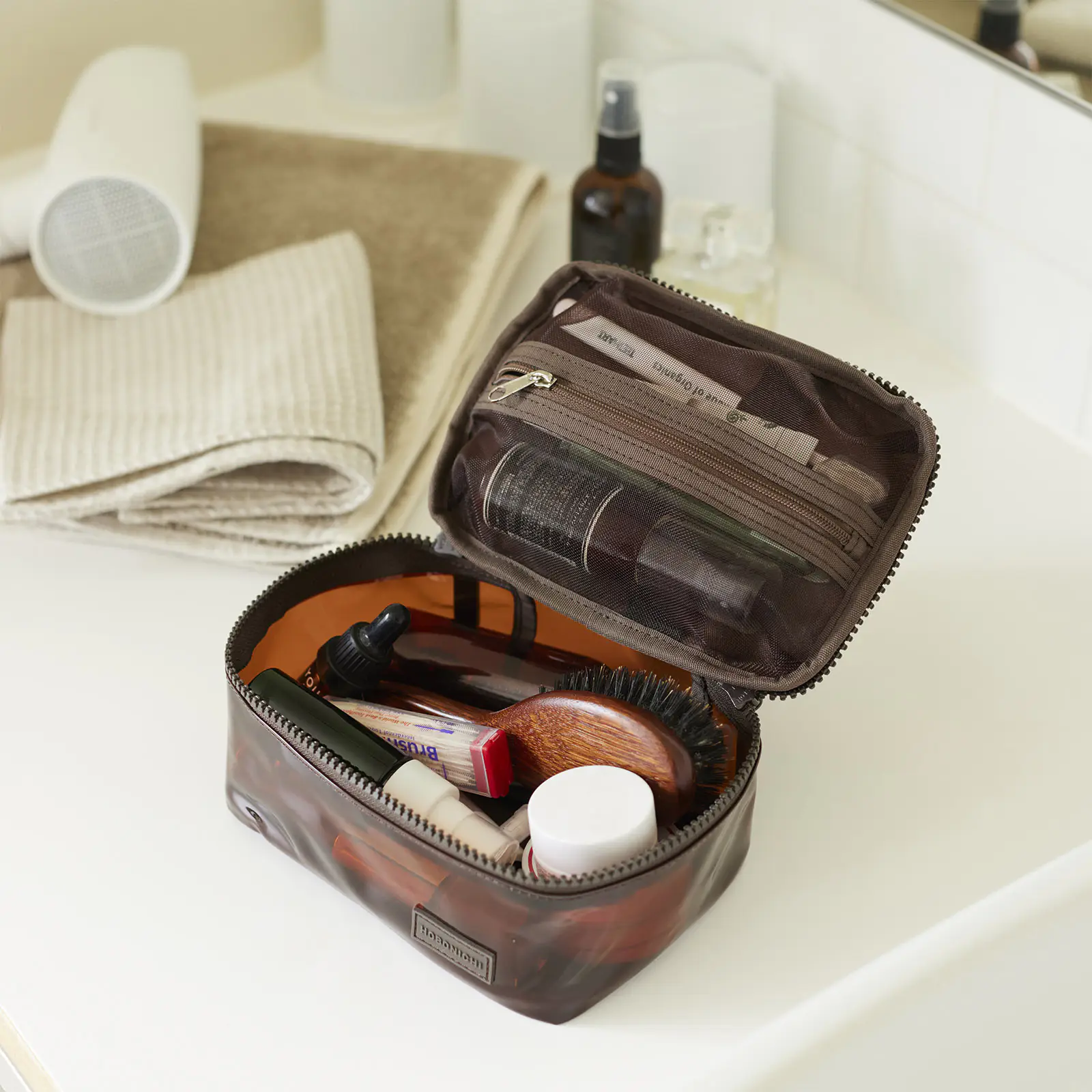 おうちや旅先で役立つコスメポーチにも。