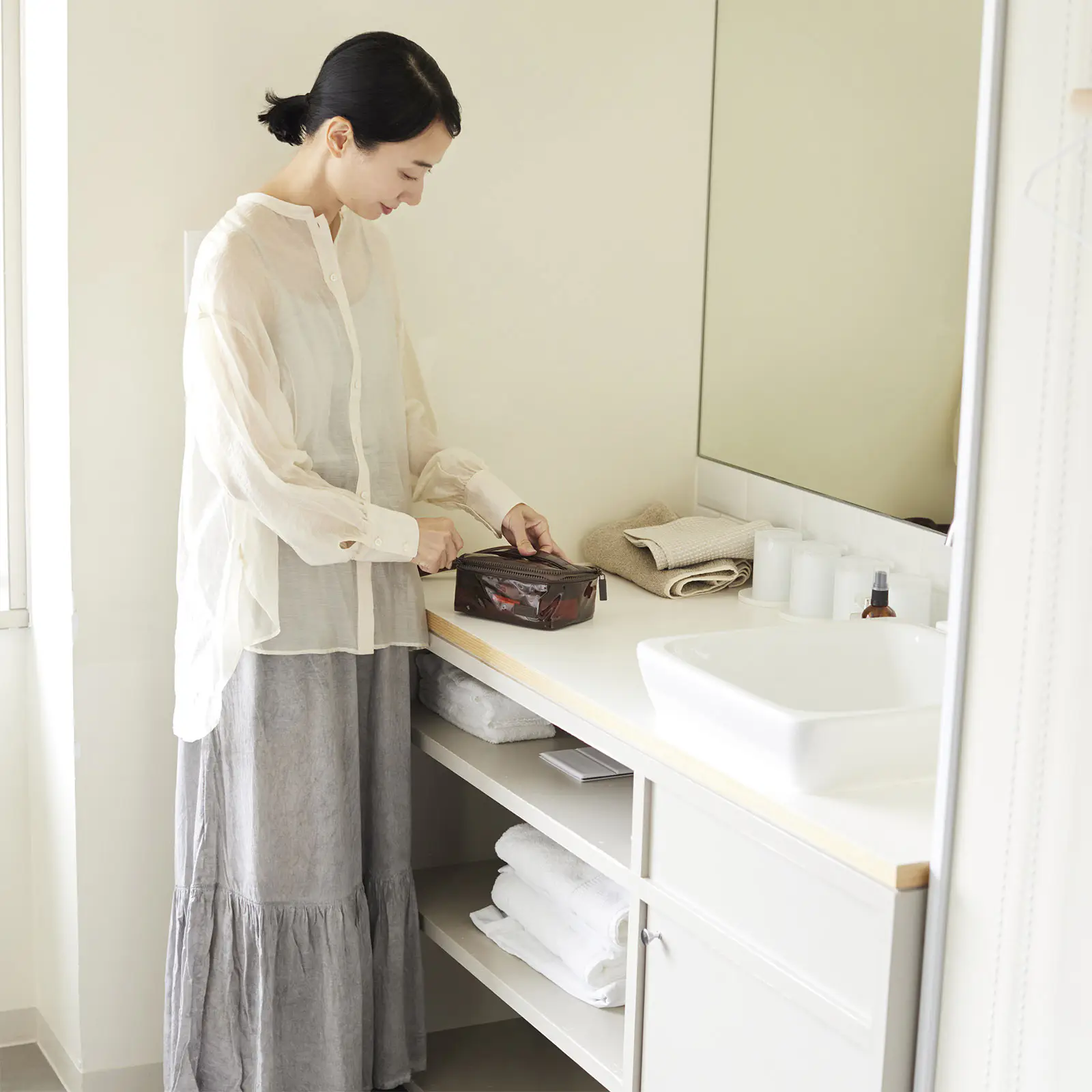 カジュアルで軽やかなひきだしポーチ。