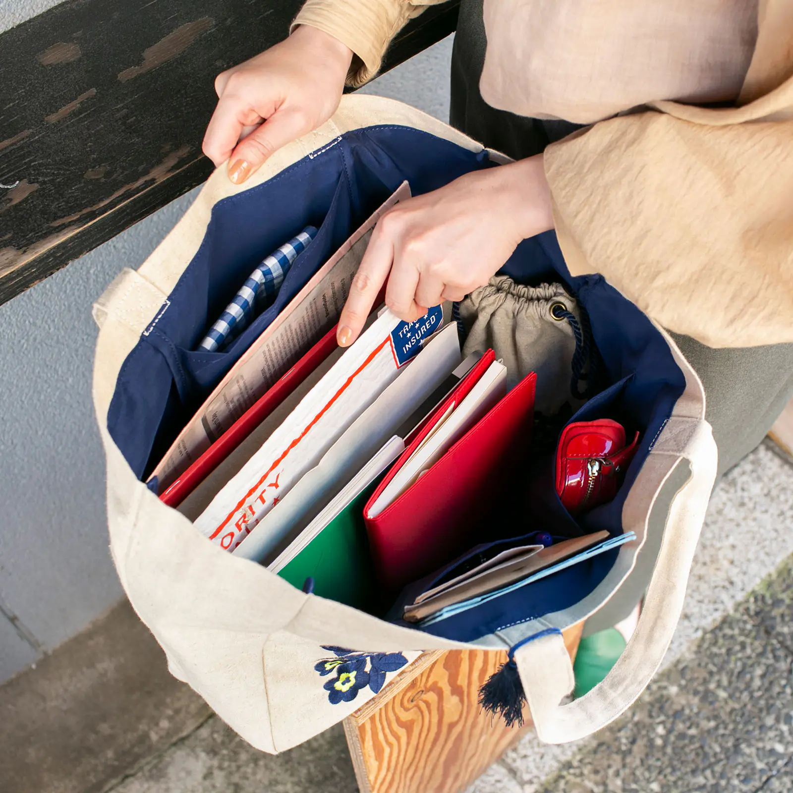 「いつでもトート」の内ポケットにすっぽり収まります。