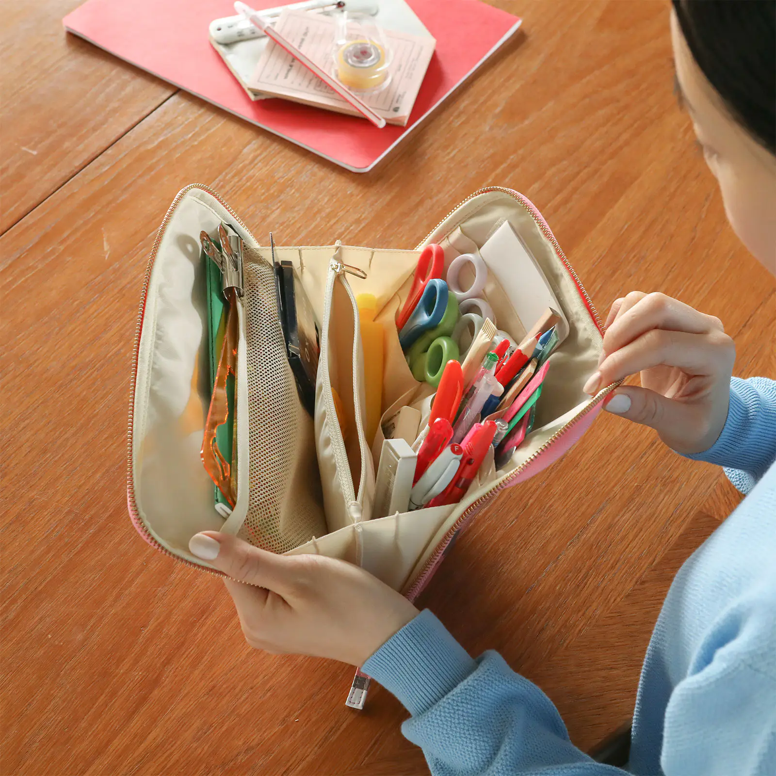 さまざまな種類の文房具を分類して収納できます。