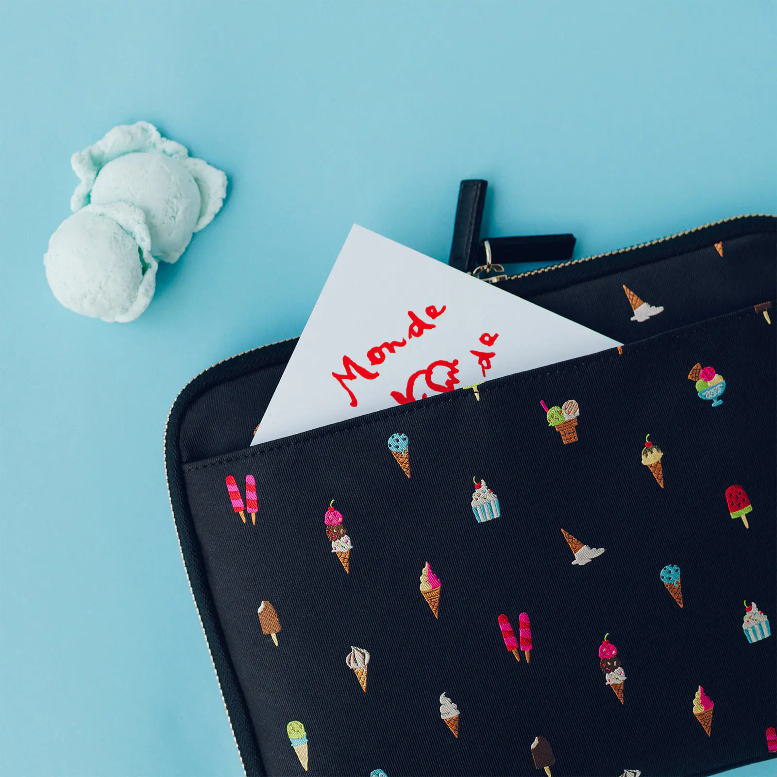 ブラックの地色にカラフルなアイスクリームが