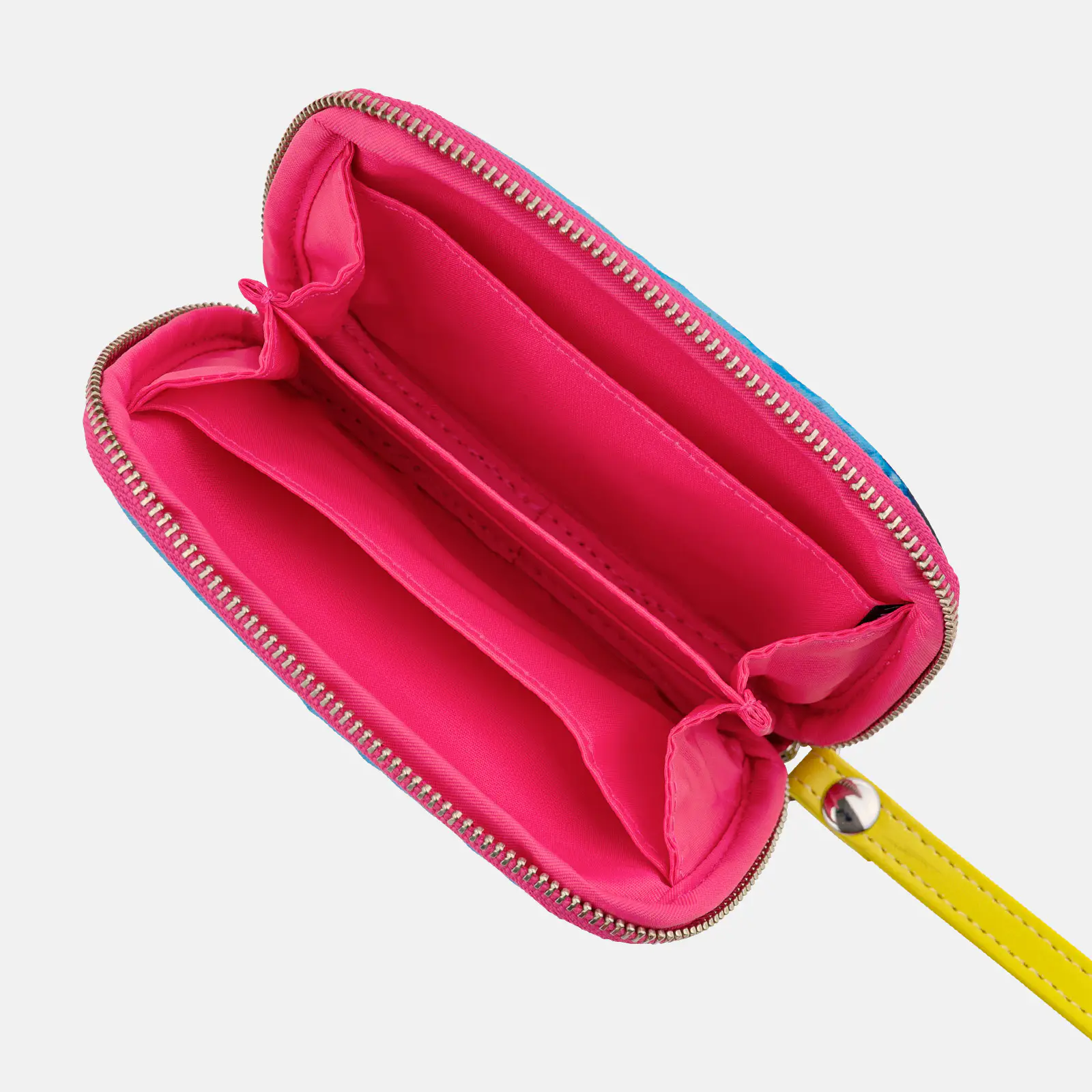 ジッパー部分と内側はあざやかなピンクで、
