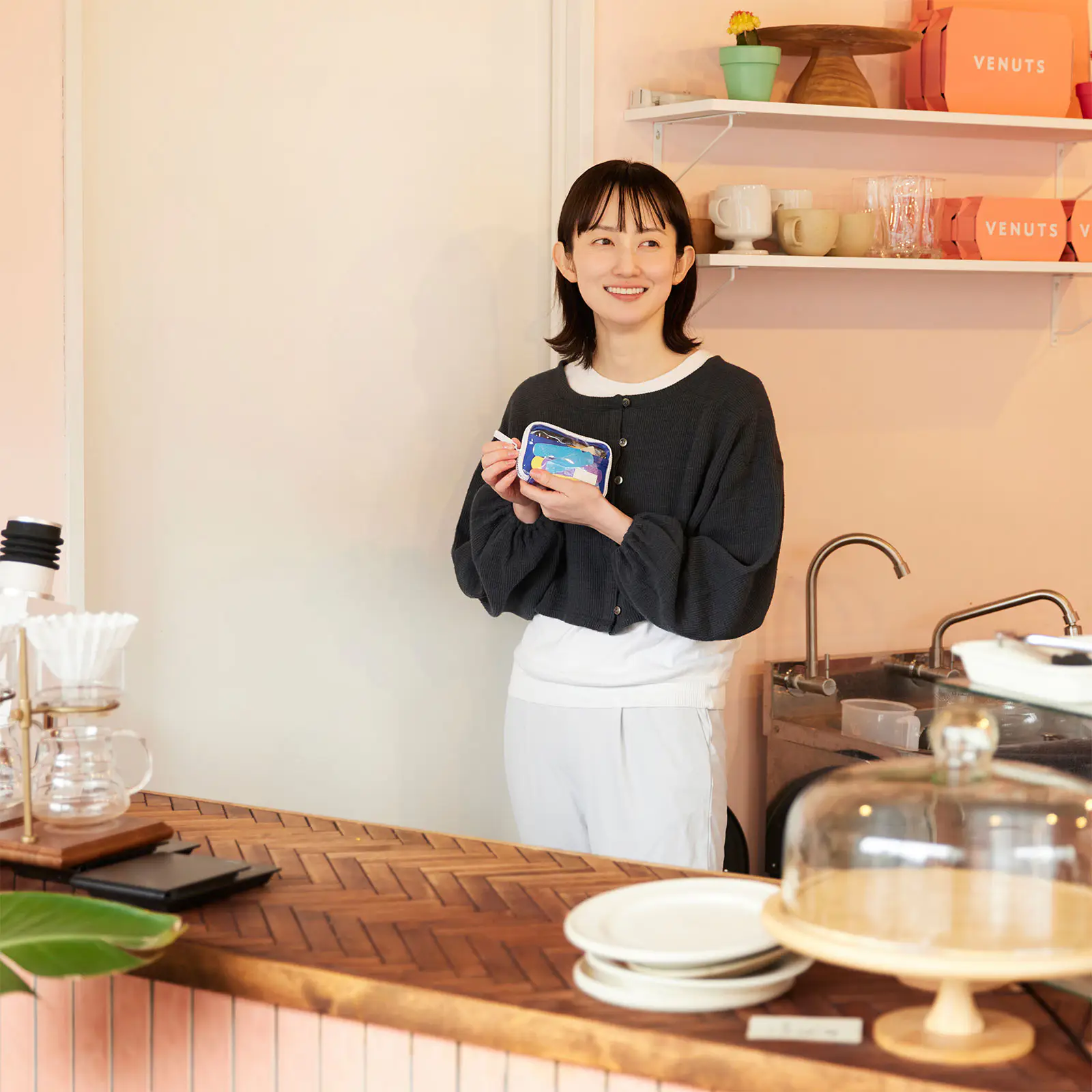 リップにミラー、短いペンやお金といった身の回りのものといっしょに、お気に入りのかわいい雑貨もひとまとめに。開けるたびにときめく、自分だけのポーチに。