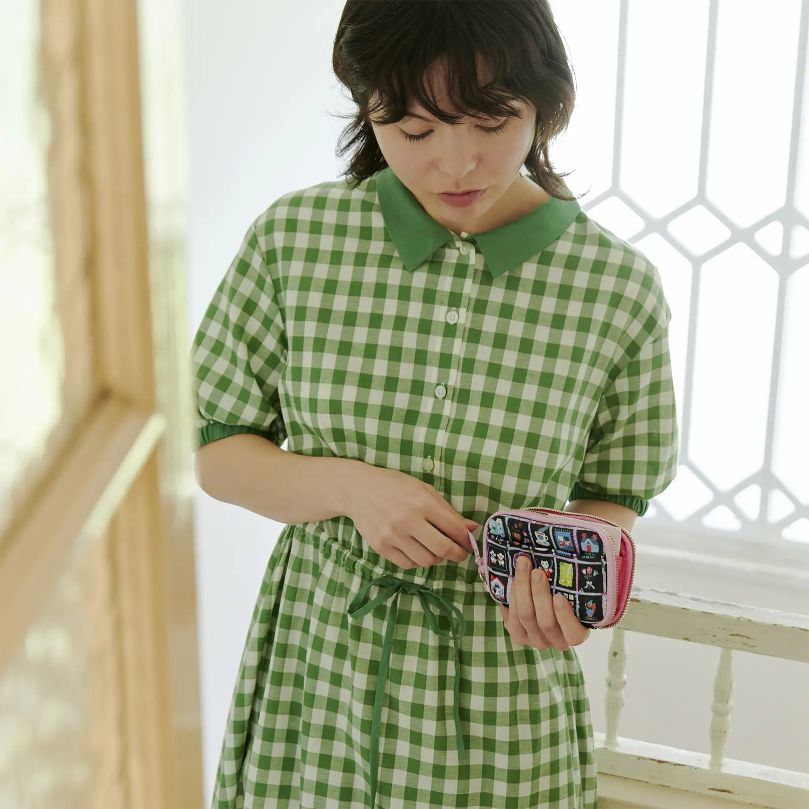 カードやお札、小銭をきっちり分けて入れておけるお財布として、お買い物のときに活躍します。おうちのカギやリップも、いっしょに持ち歩けます。