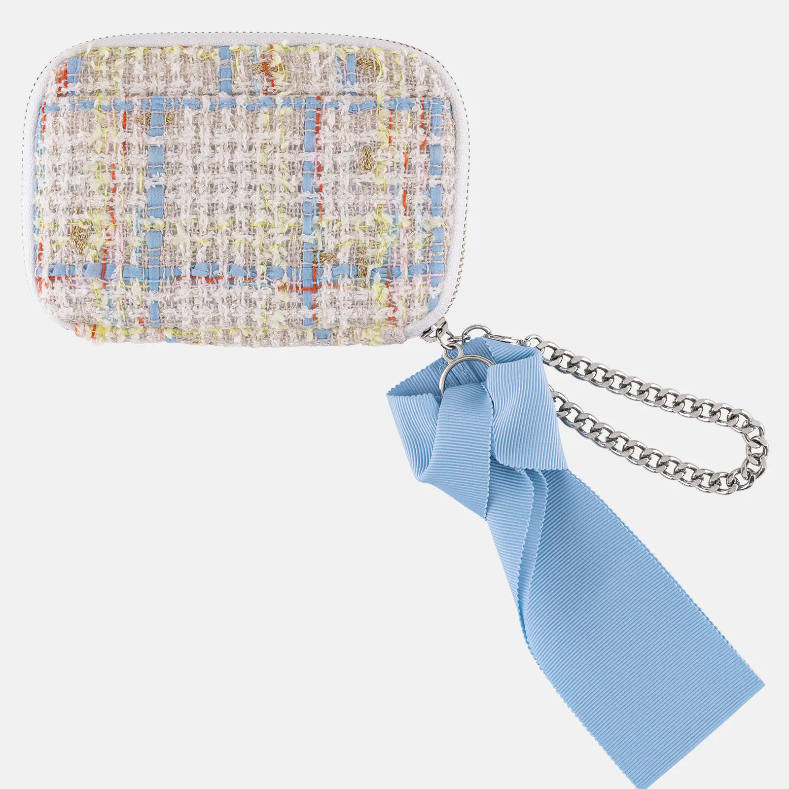ホワイトの地をベースに、ライトブルー、イエロー、