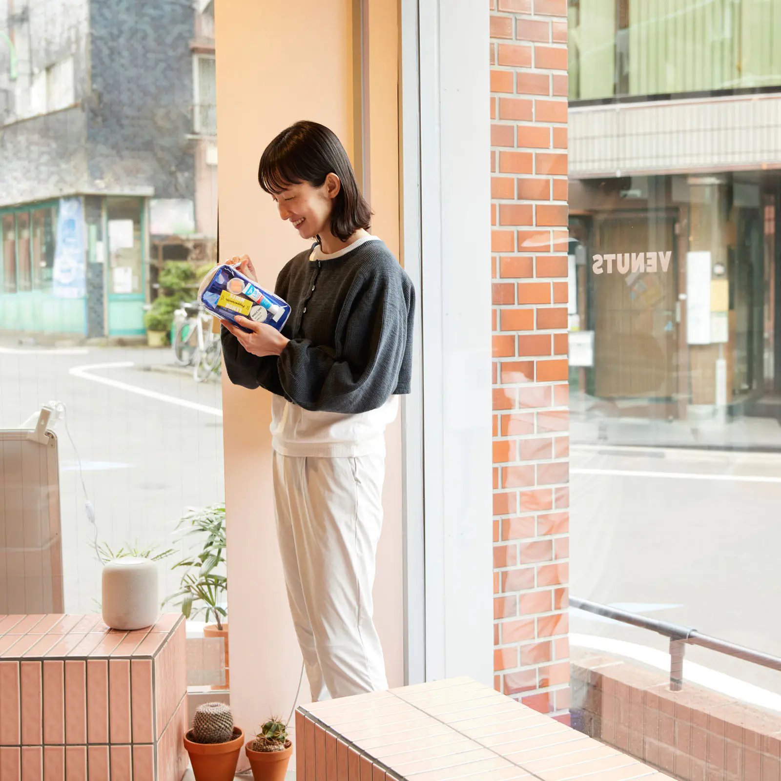 カジュアルで軽やかなひきだしポーチ。