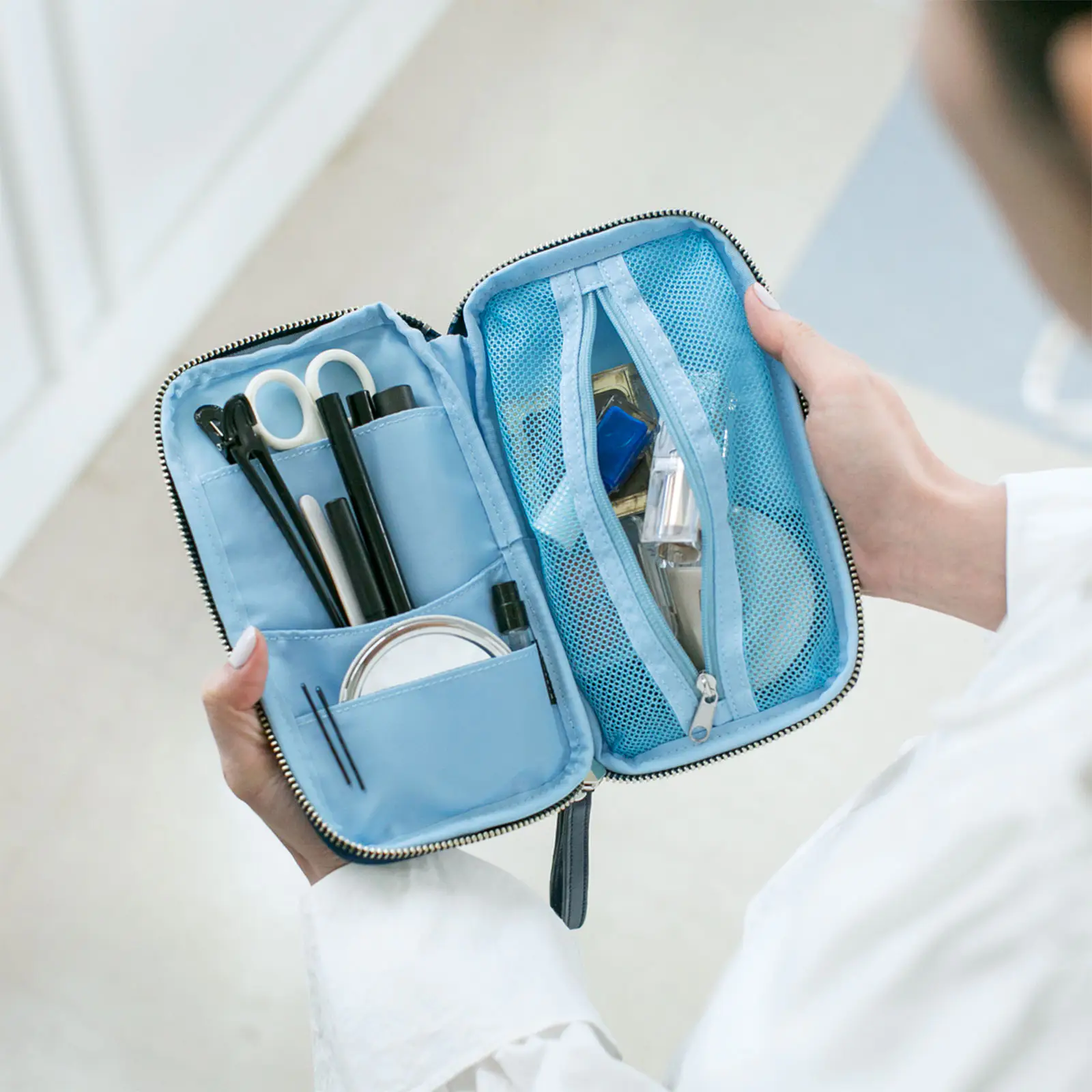 機内や旅先で役立つトラベルポーチとして。