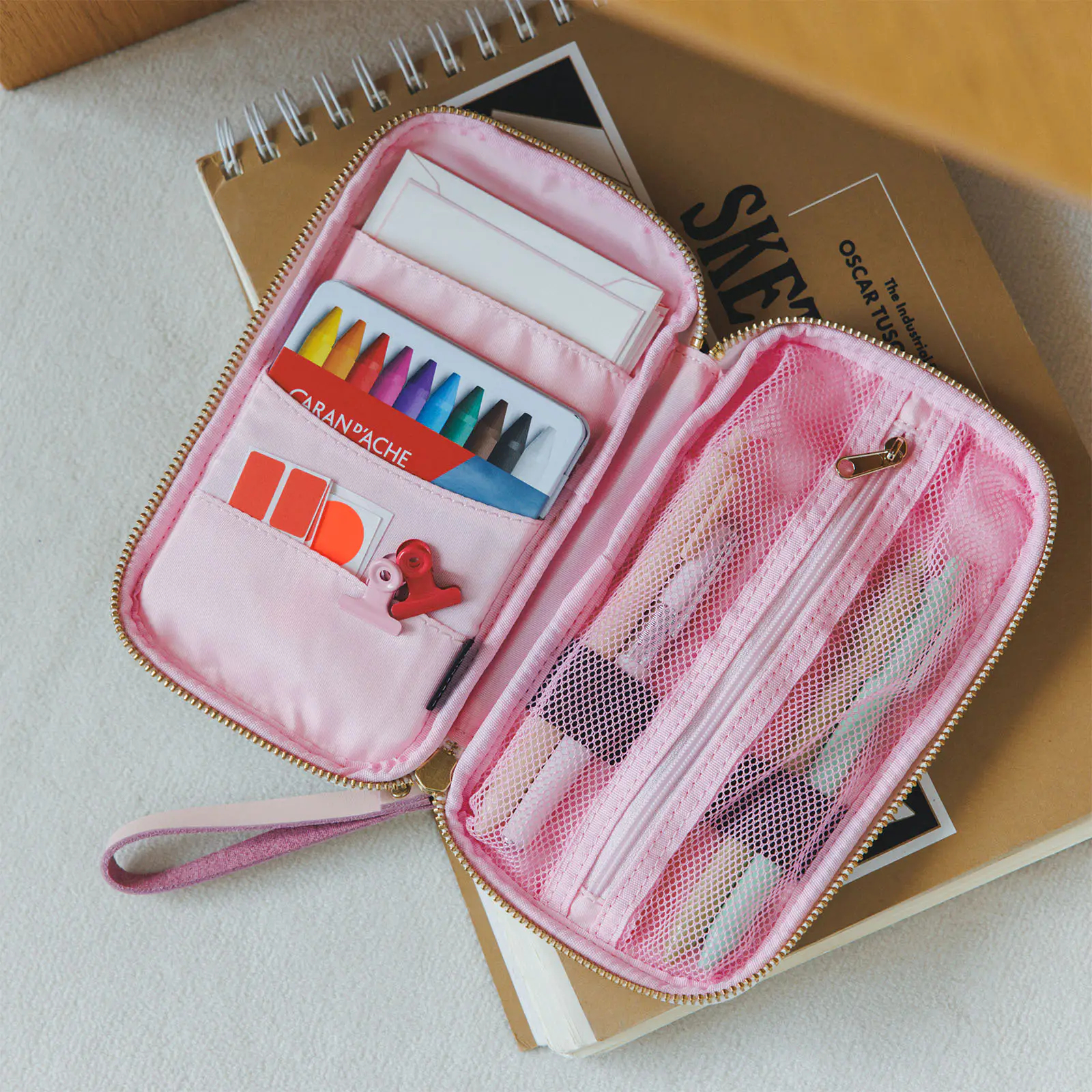 内部にはペンなどを固定しておける