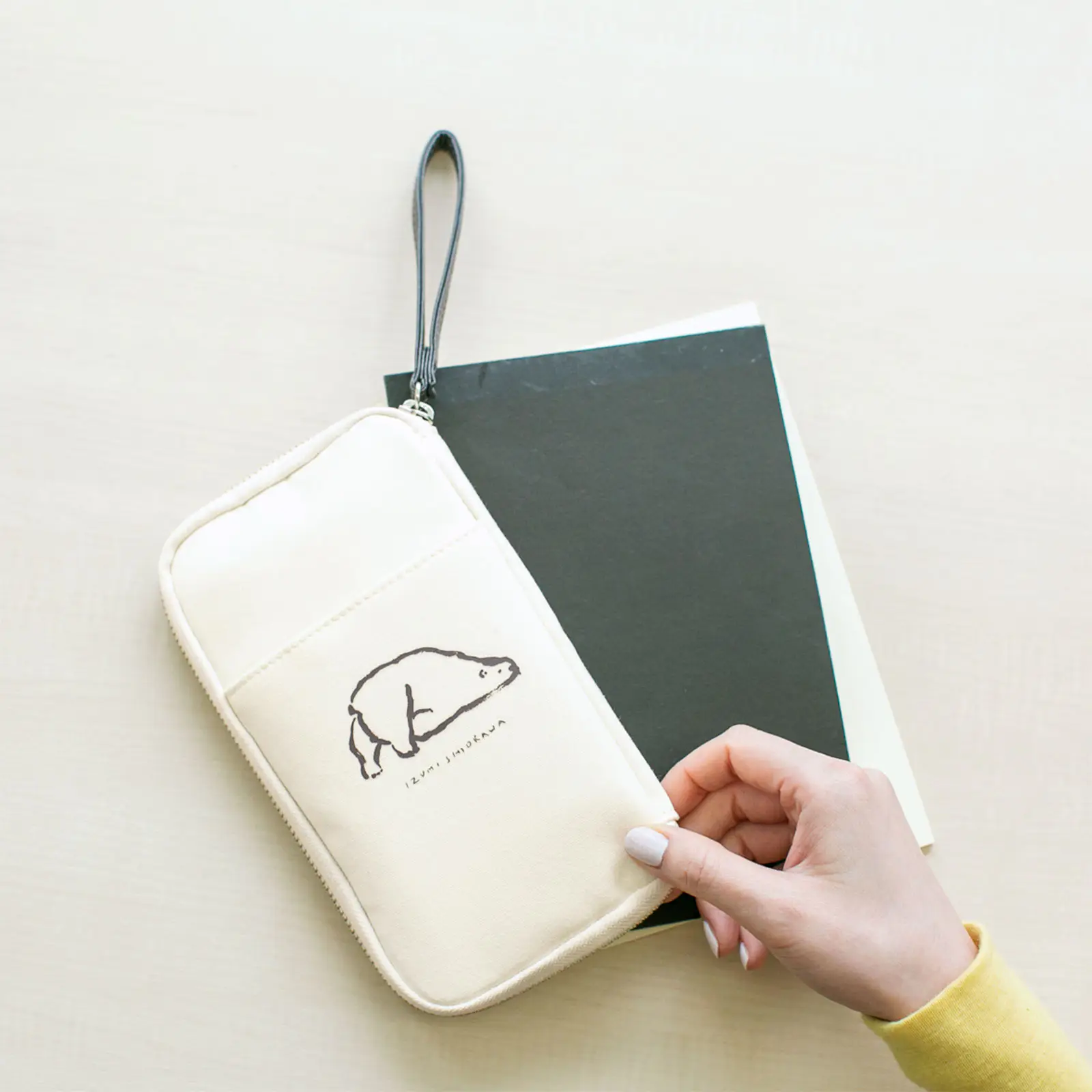 ポーチは収納物を衝撃から保護することを保証するものではありません。特にスマートフォン等の電子機器にご注意ください。