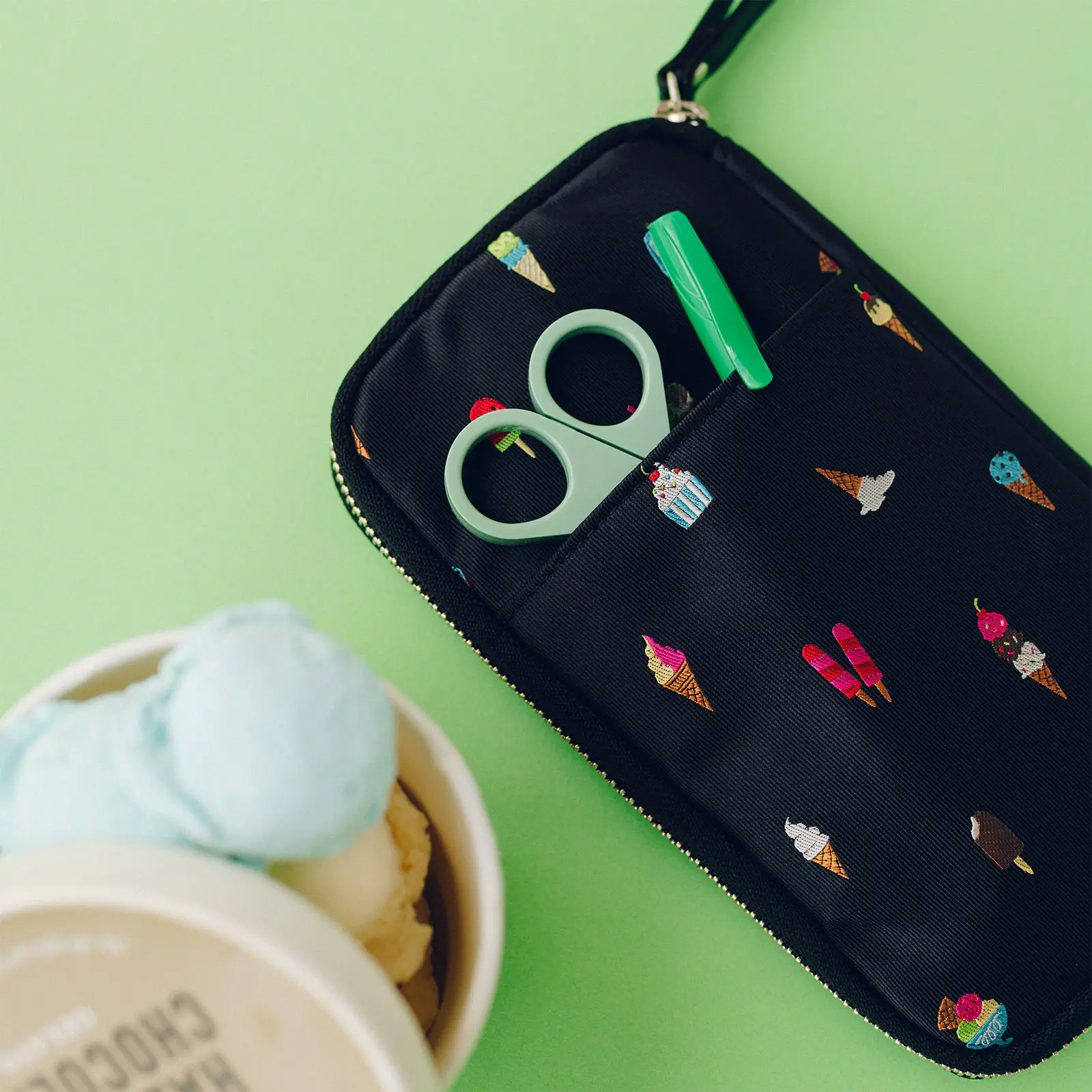 ブラックの地色にカラフルなアイスクリームが