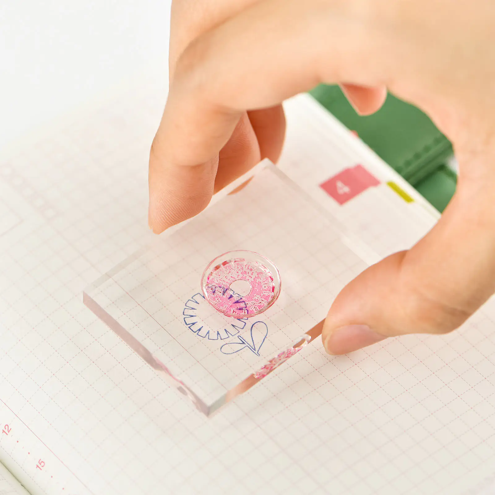 樹脂印の部分を透明のアクリル台に