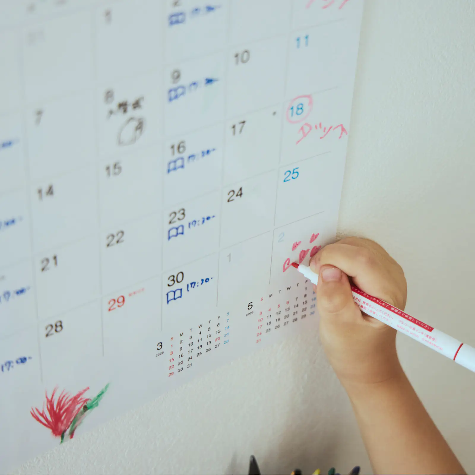 お誕生日や記念日など、消したくない事柄については、油性インクのペンでご記入すると便利です!