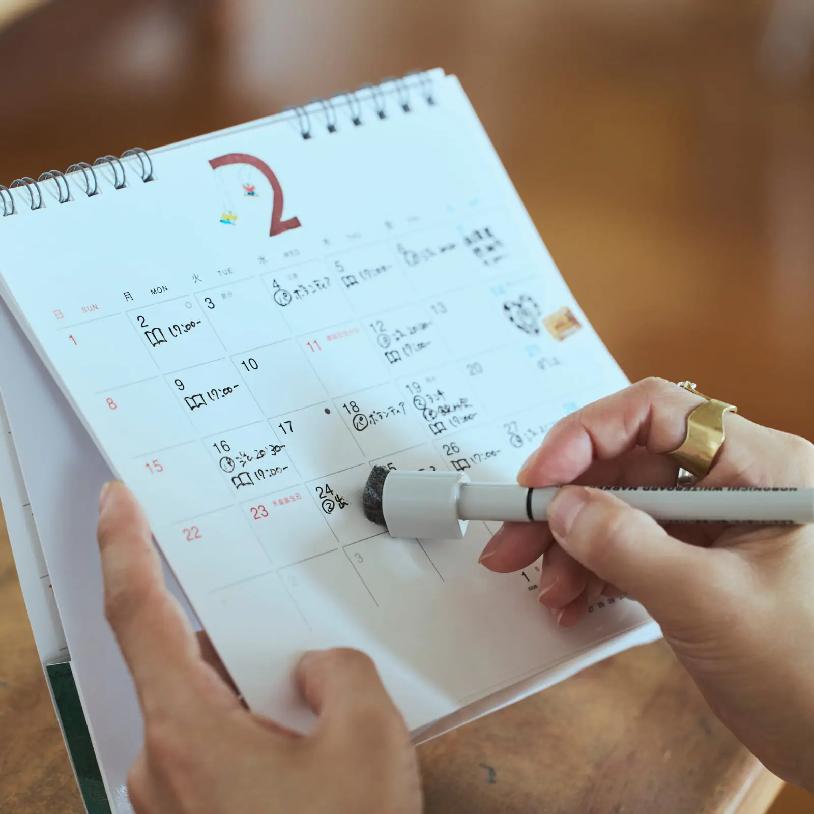 コンパクトに設計された卓上カレンダーに
