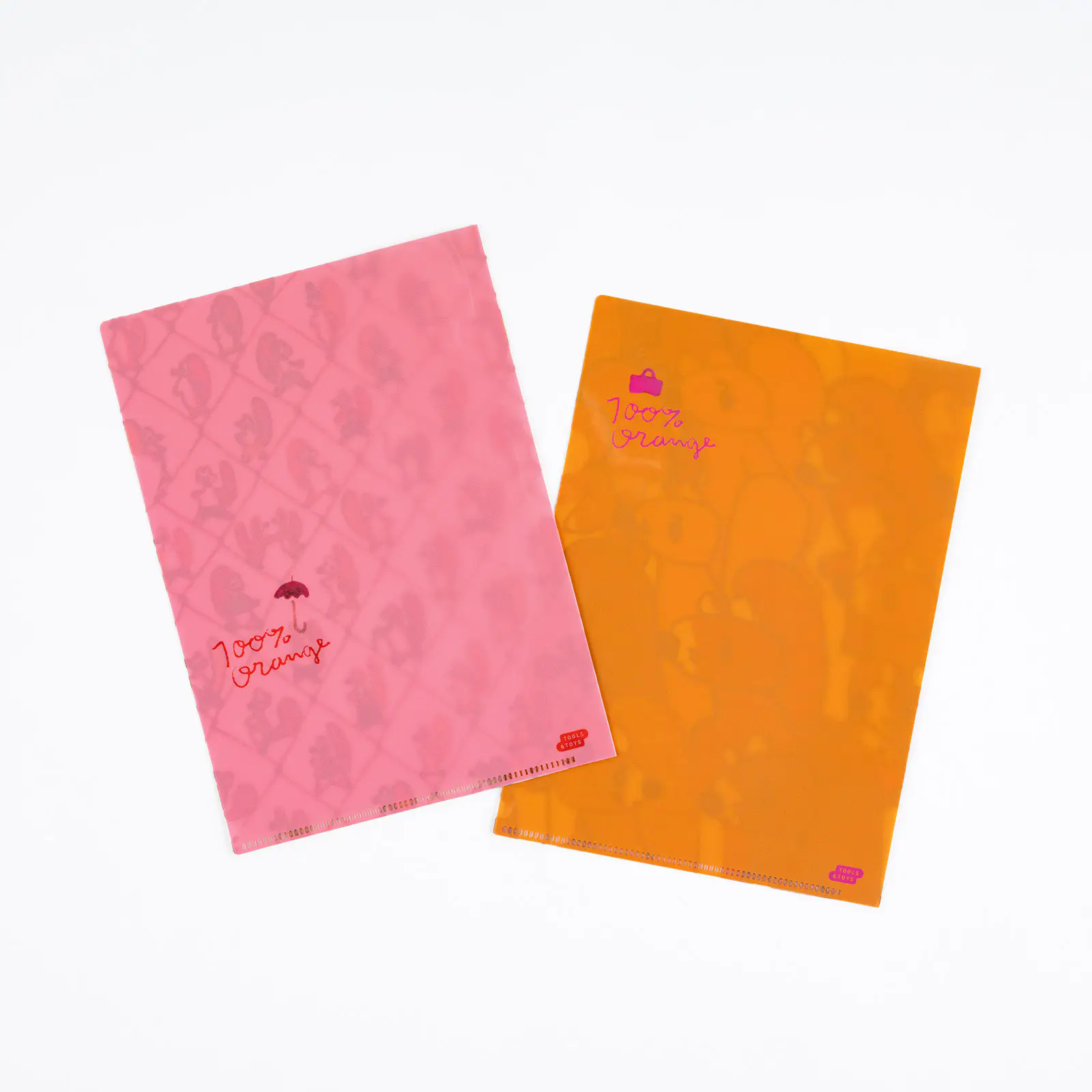 裏面はオレンジ色で、サインとカバンの絵が入っています。