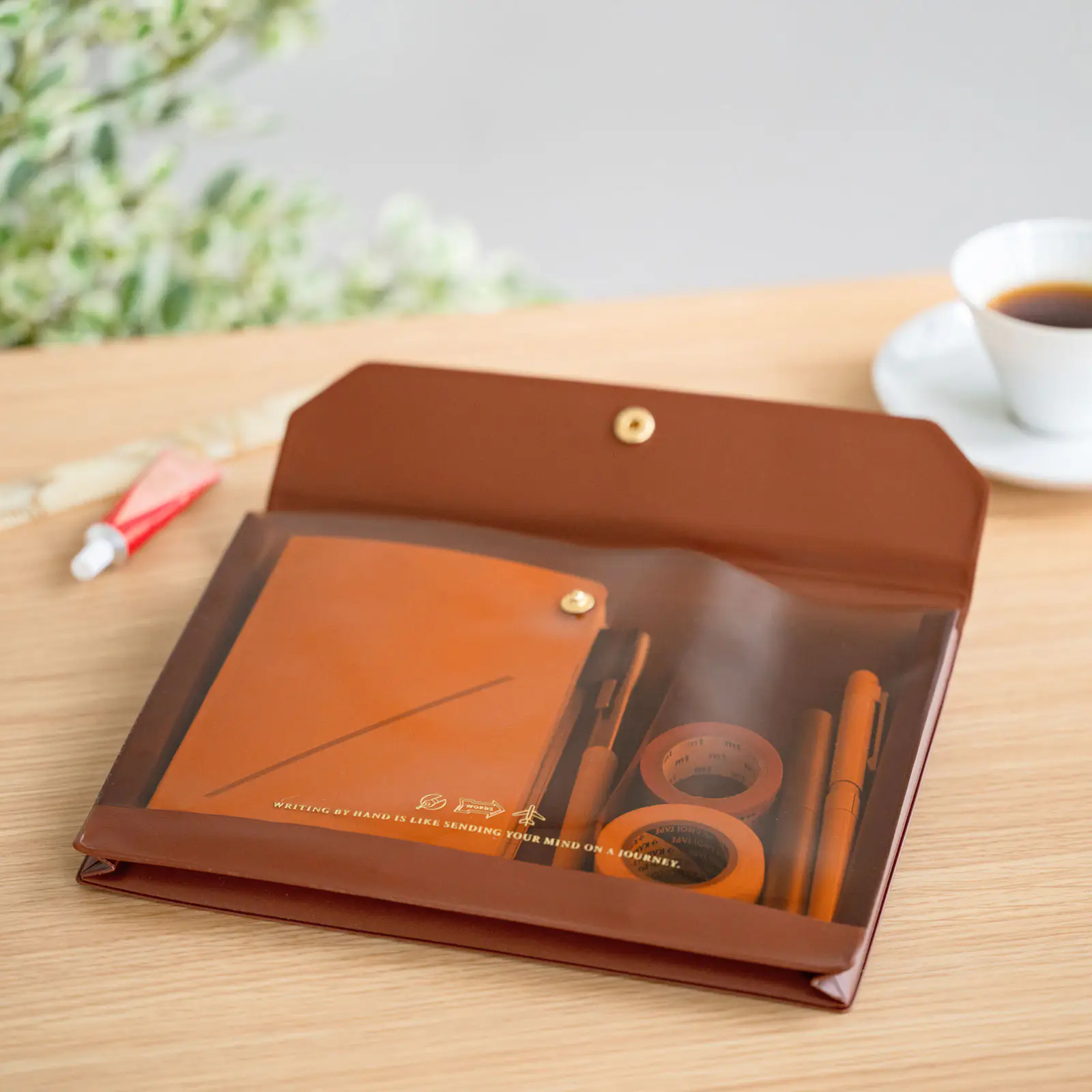 手帳本体「HON」や書類、文具を入れて