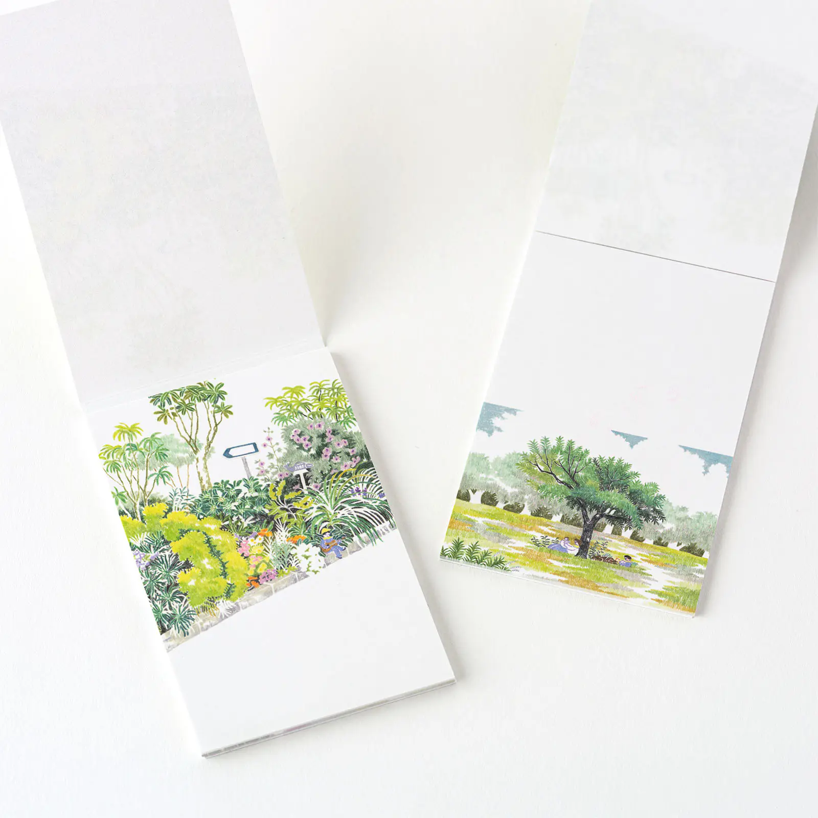 細密で鮮やかな花壇や野原を描いた色鉛筆画作品