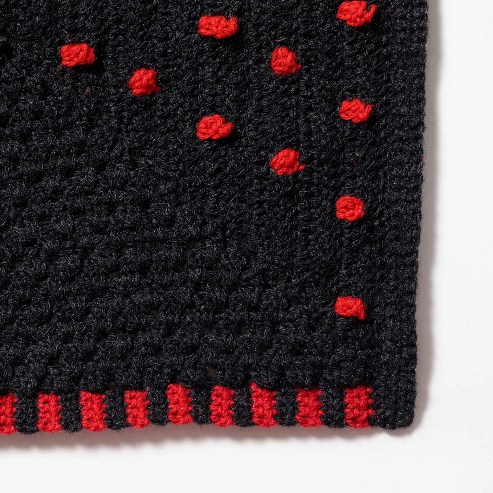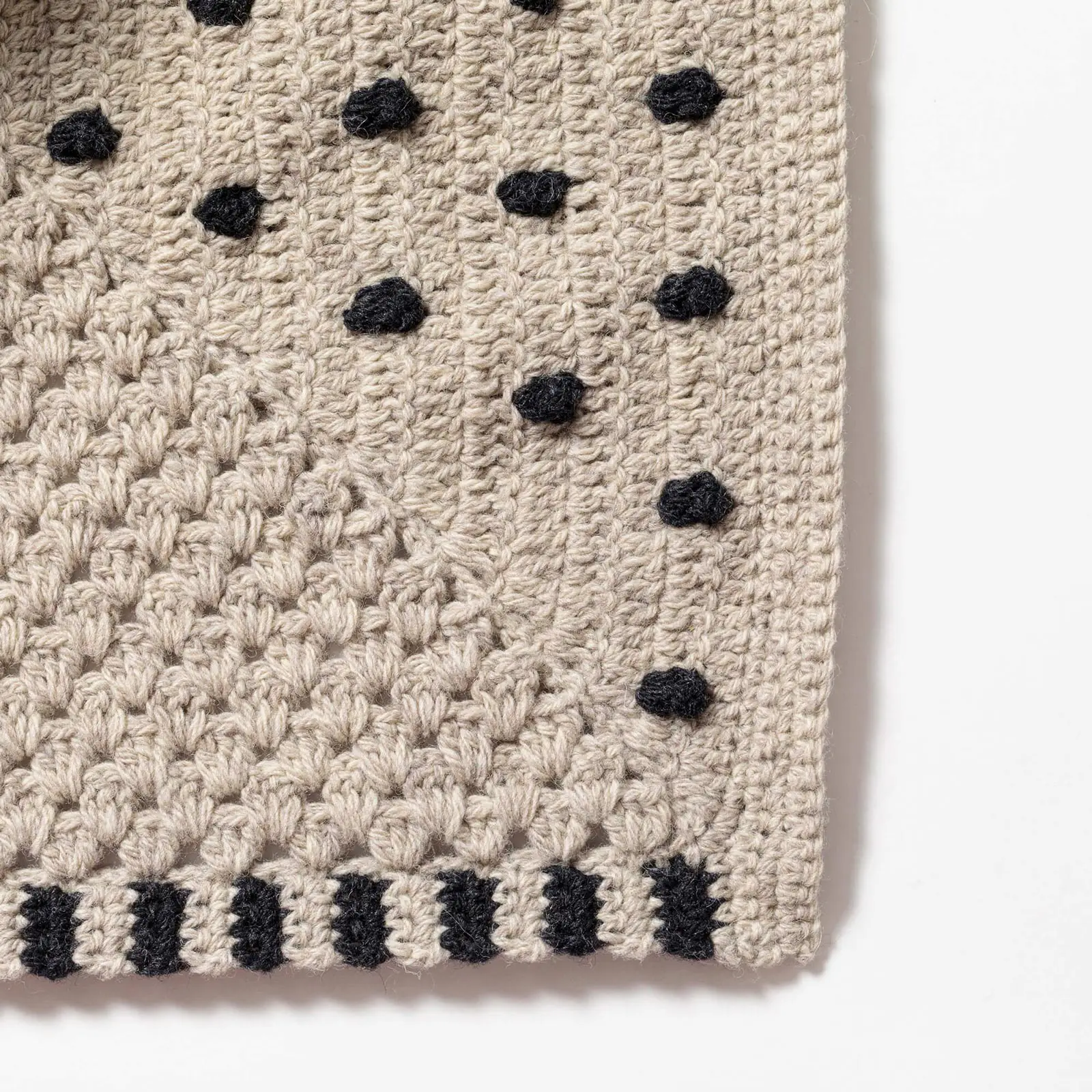 長編みのベースに「3Dのドットを編み込む」というのは、