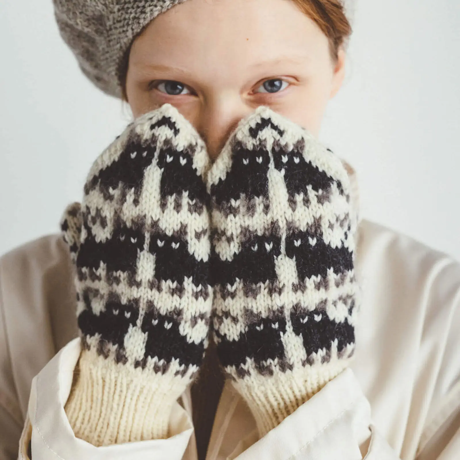 おすましポーズの、スラッとした猫がモチーフのミトン