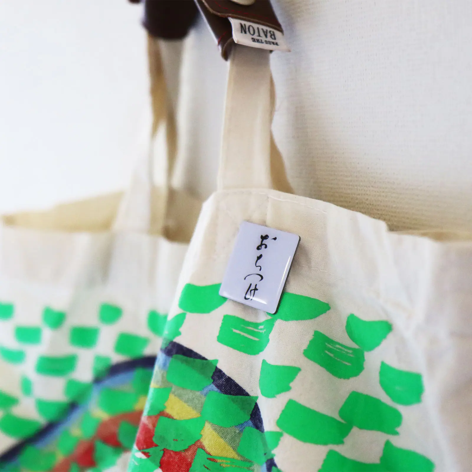 いつでも持ち歩ける正方形のピンバッジ。