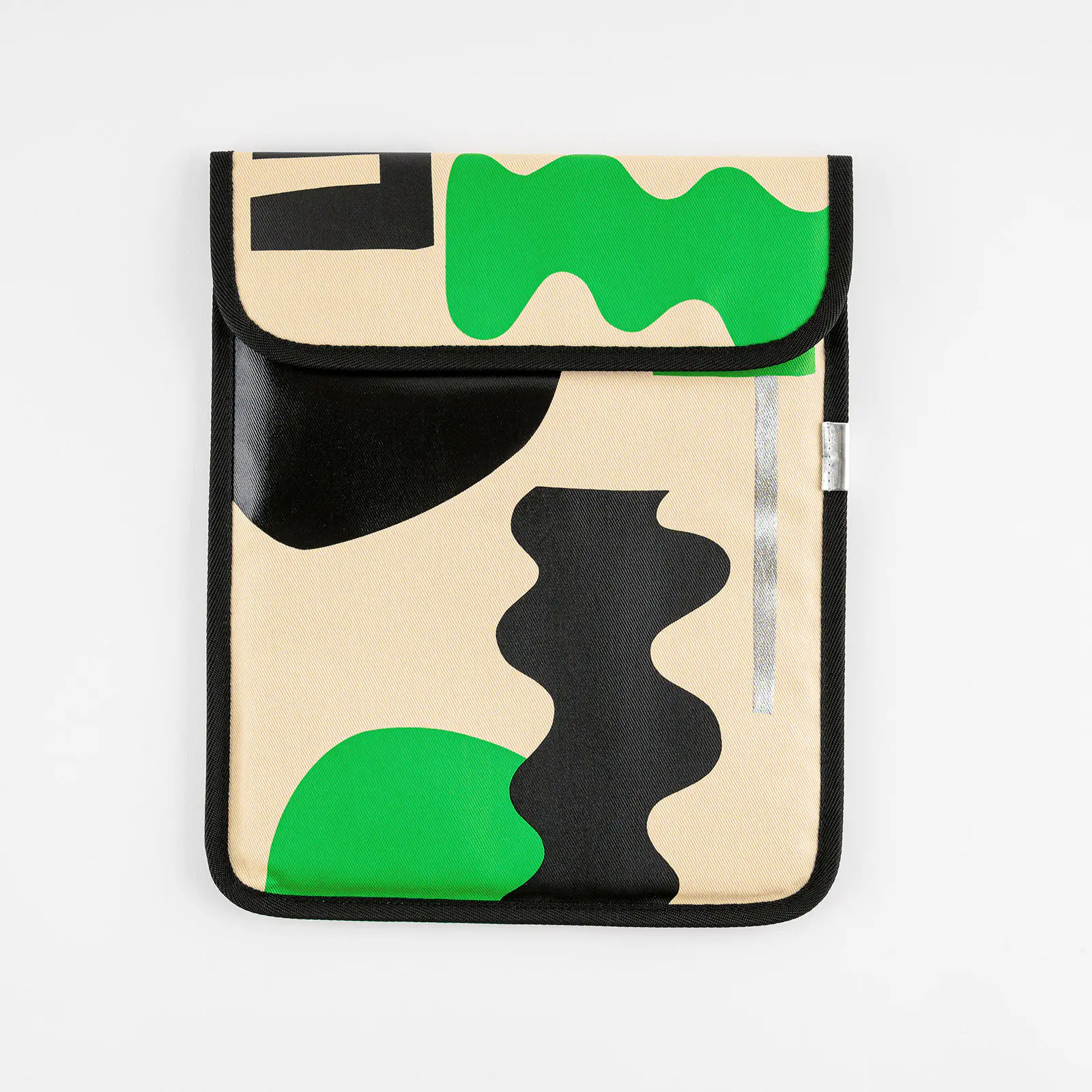 グリーン、ブラック、シルバーの有機的な図形が
