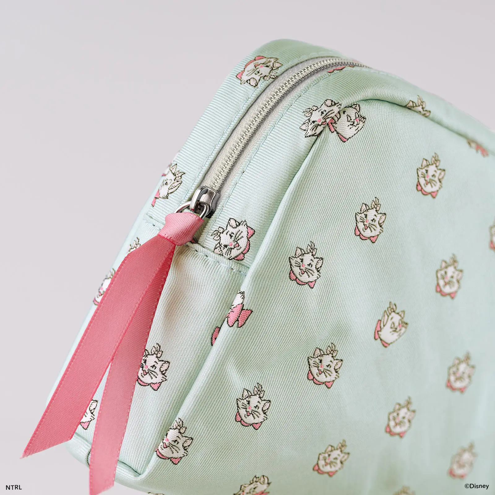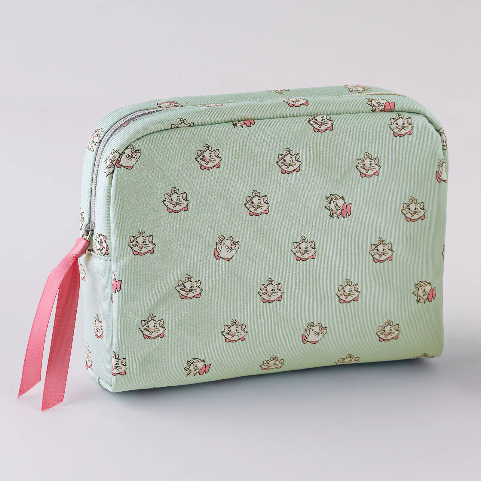 ディズニー・マリーの顔が水色の生地に並ぶ、