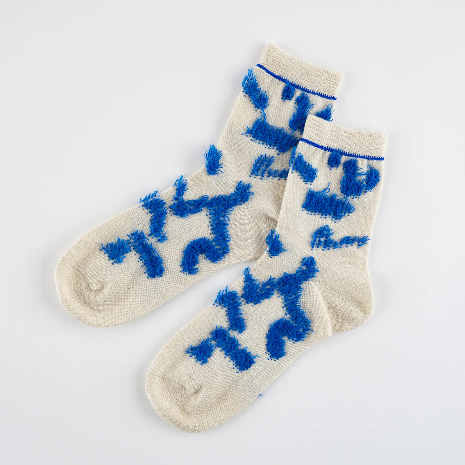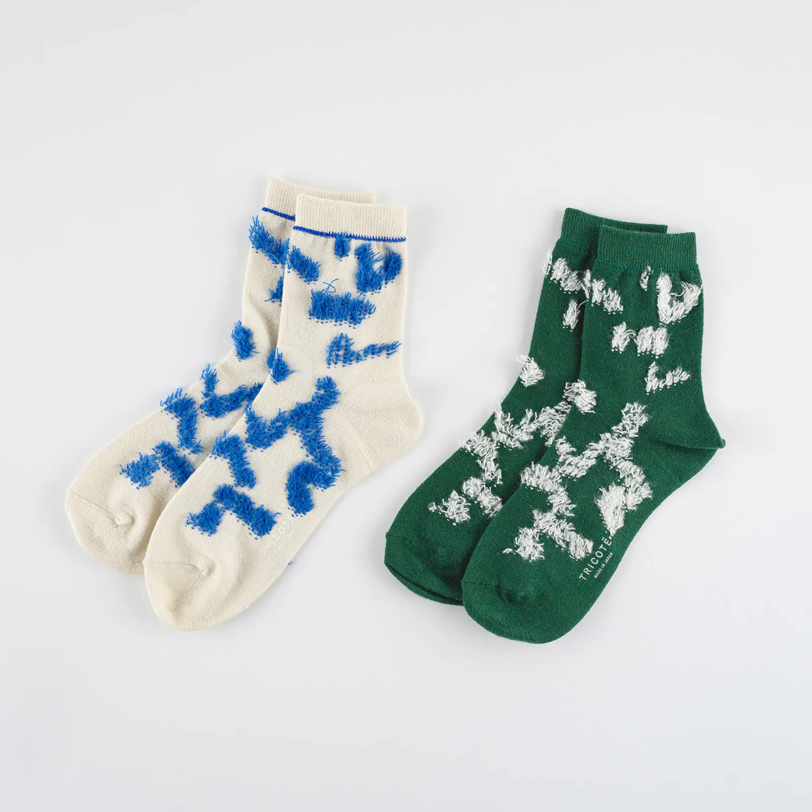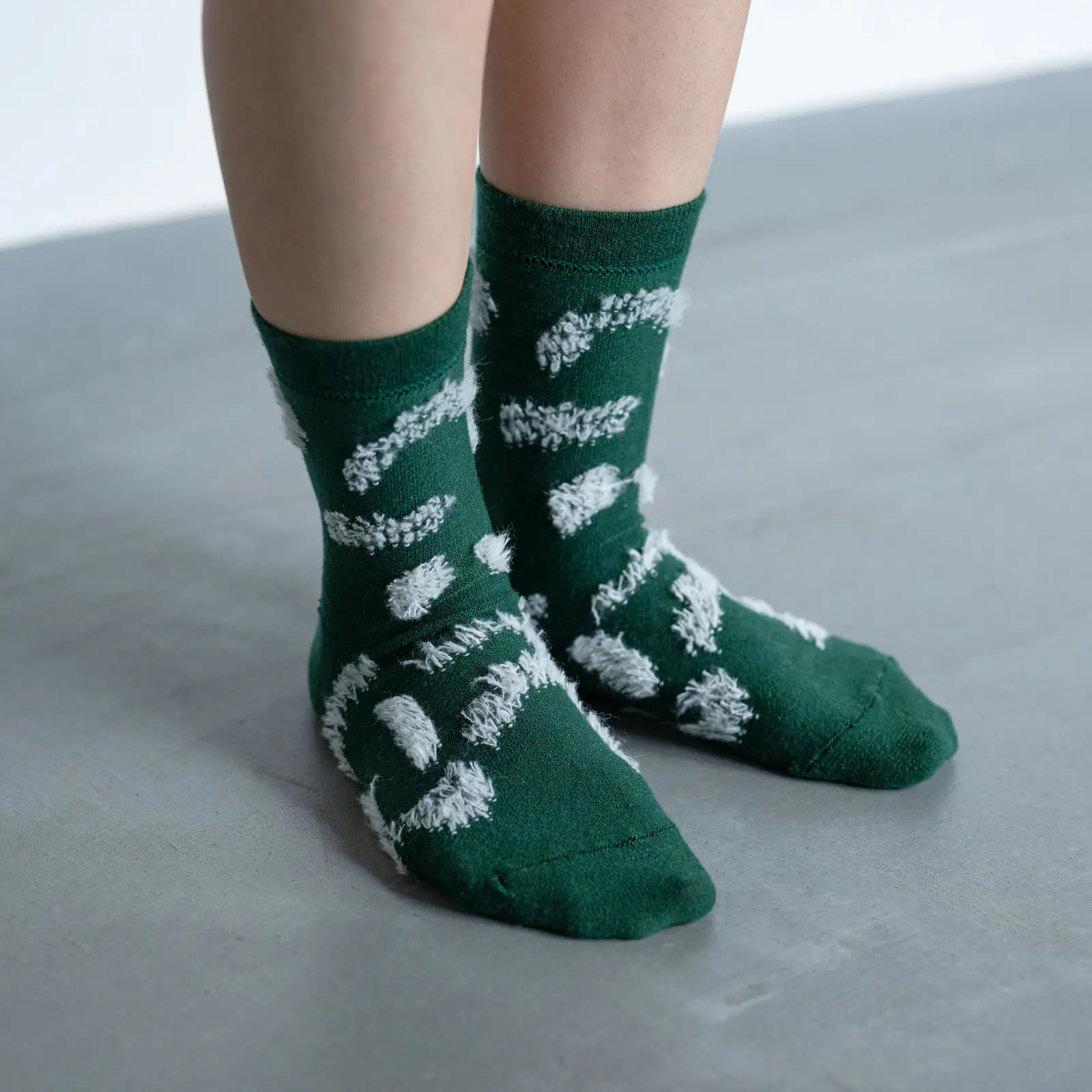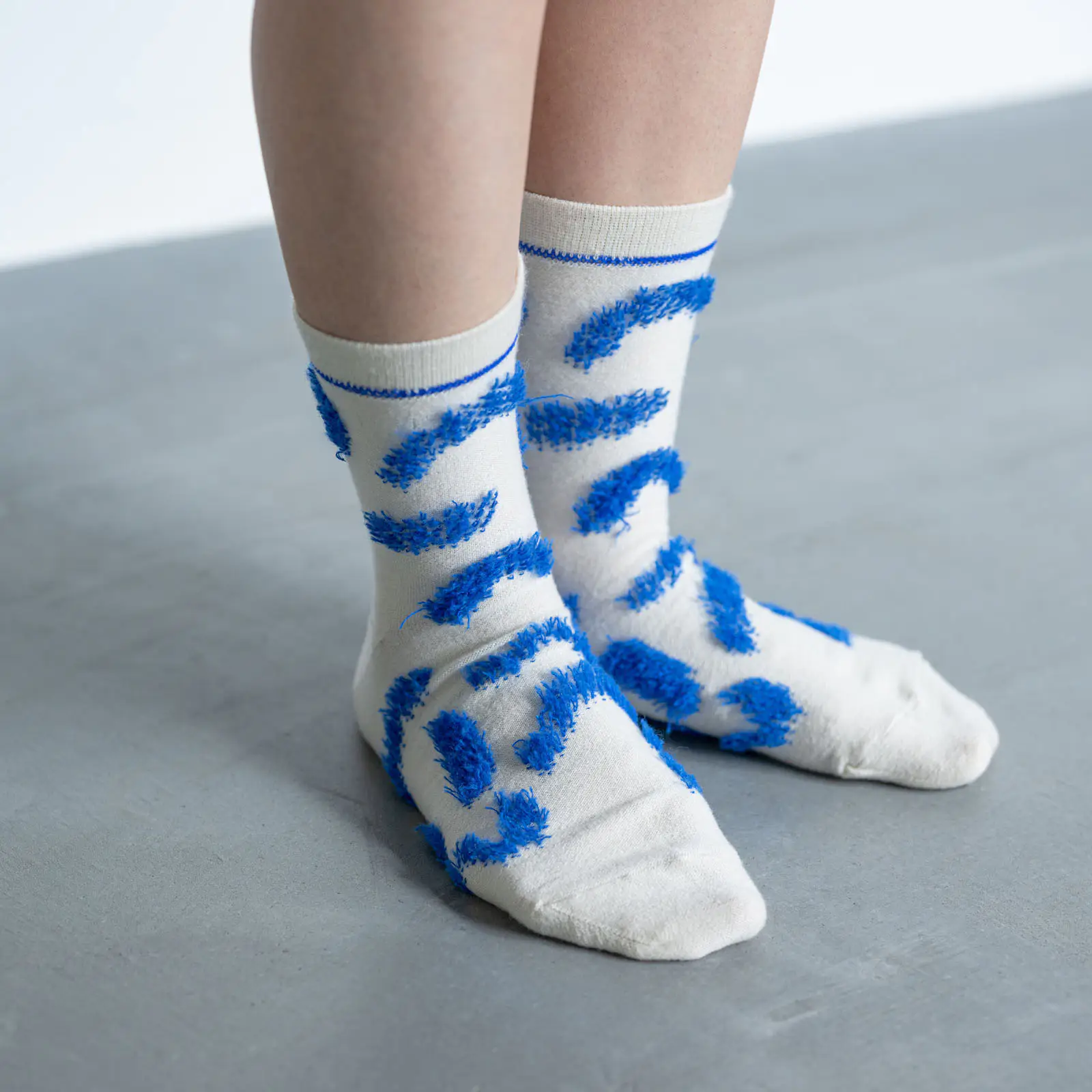 編み地を利用し、質感が違う糸で柄を表現しました。