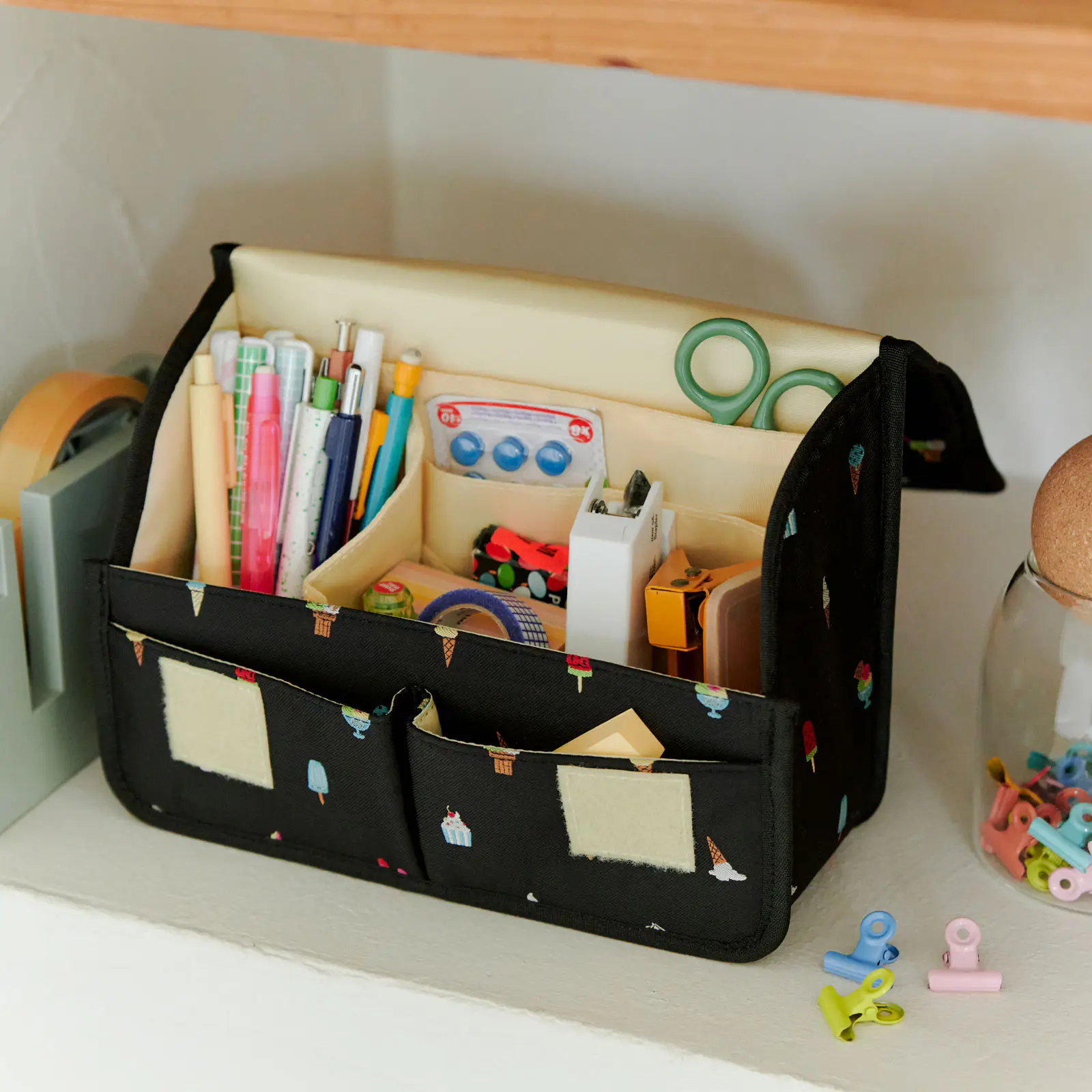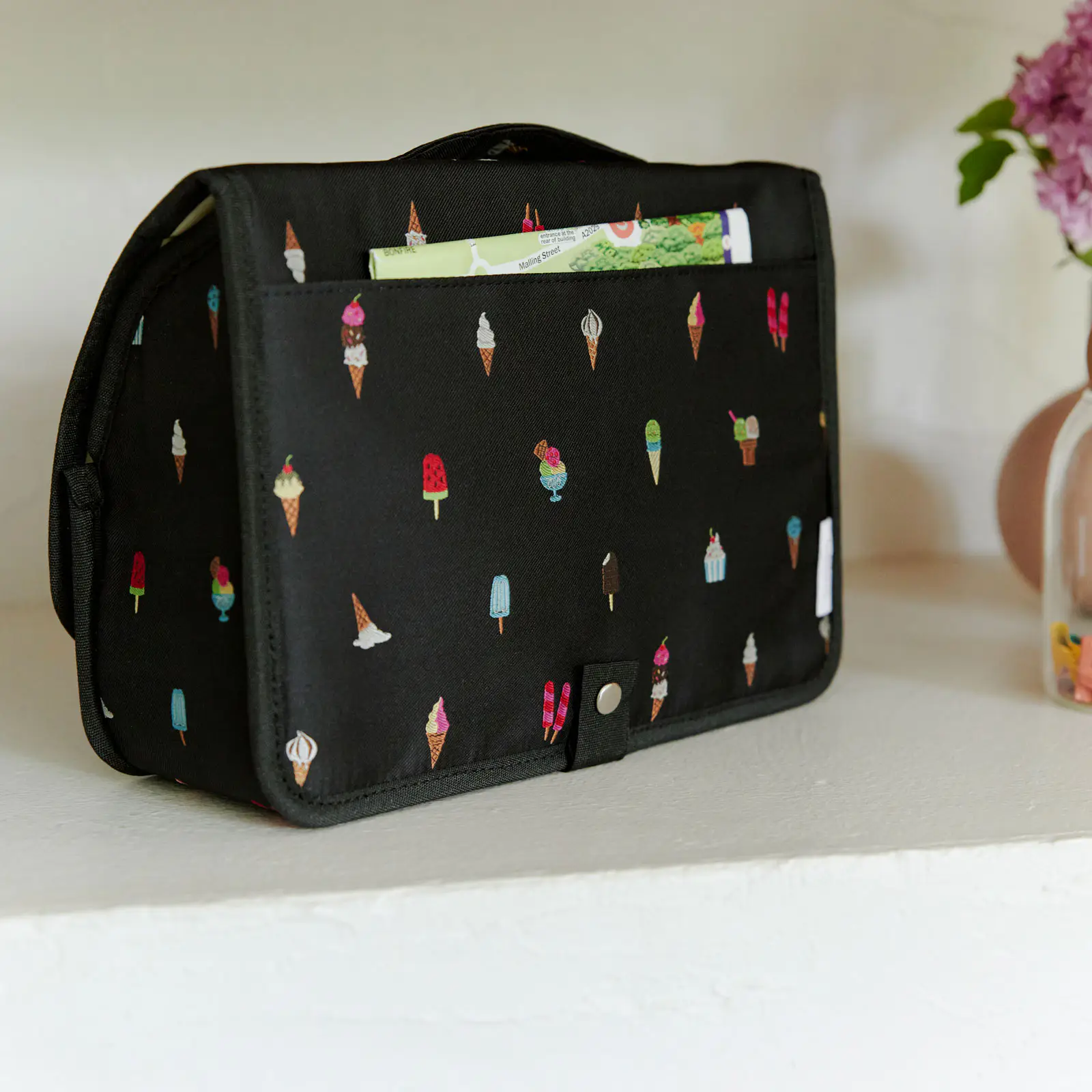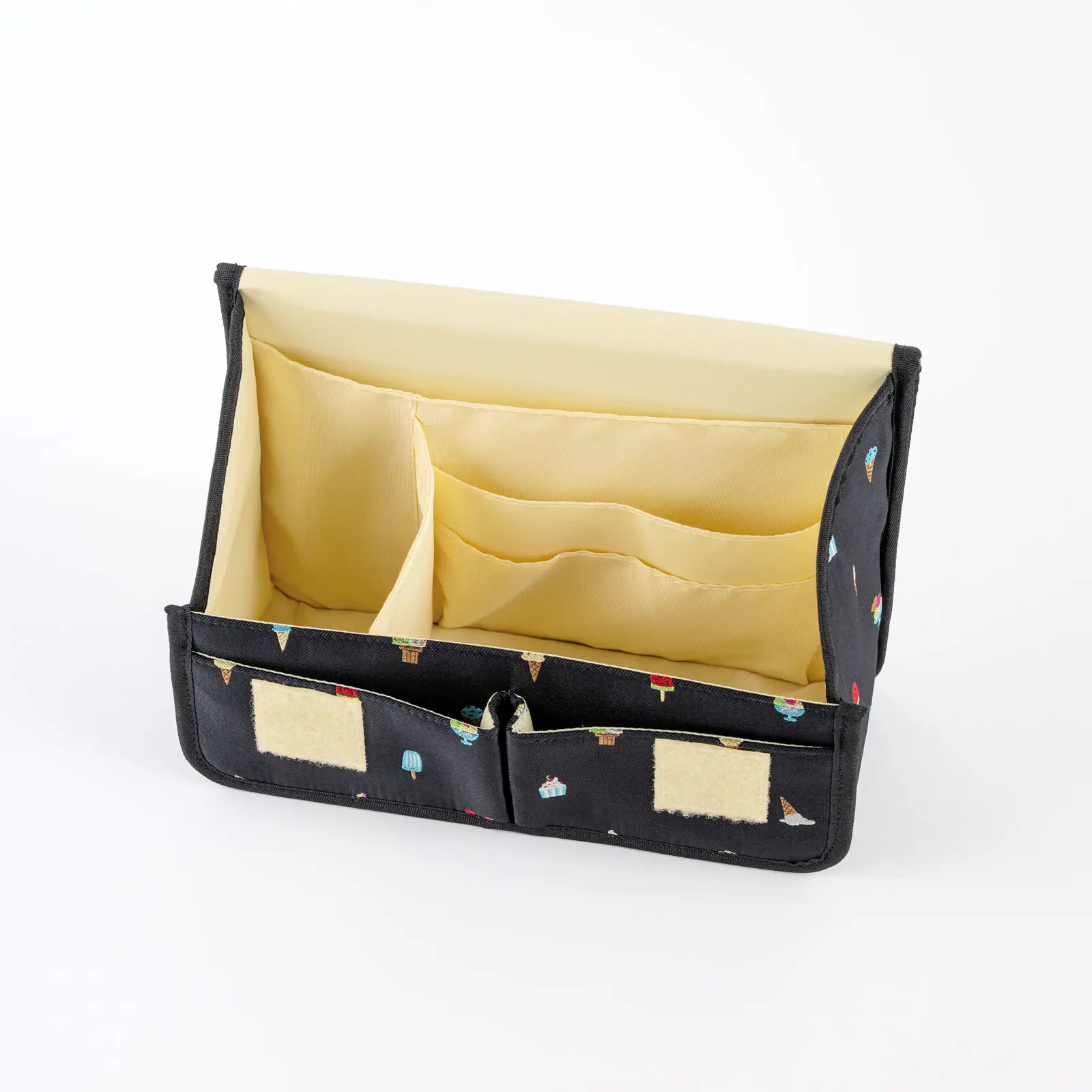 ブラックの地色にカラフルなアイスクリームが