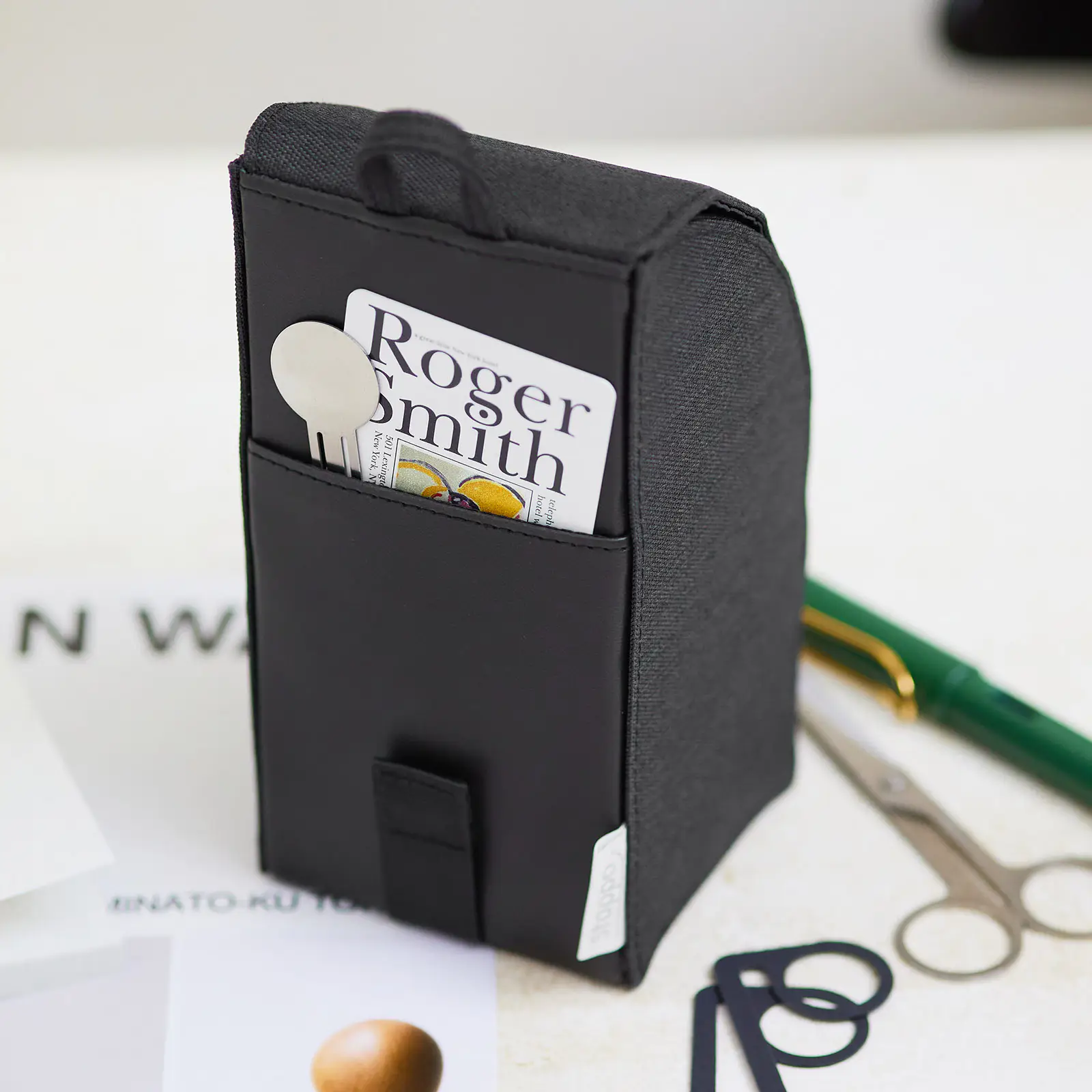 裏面のポケットに入れると便利です。