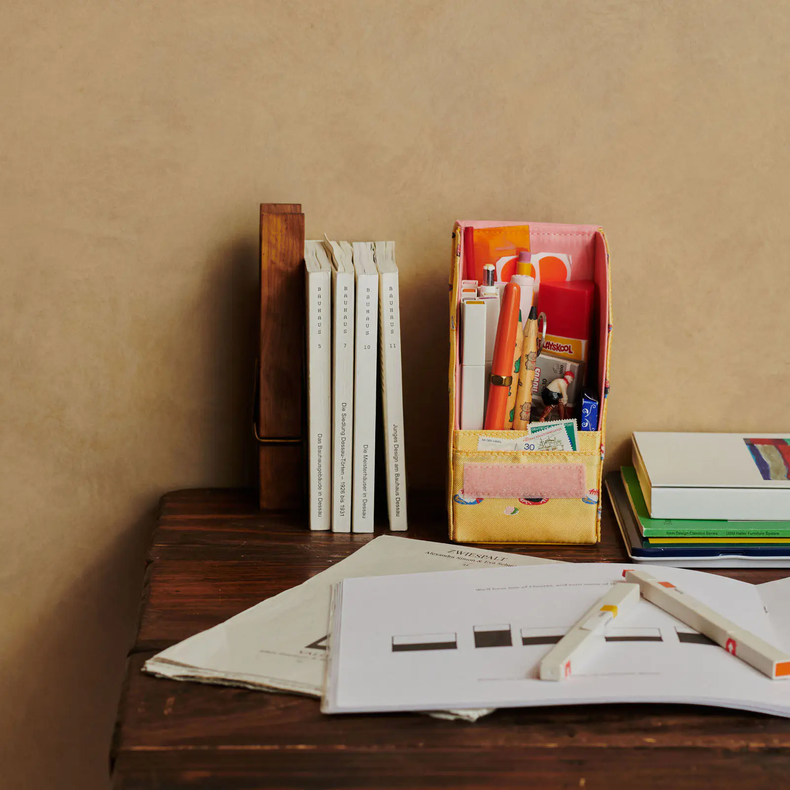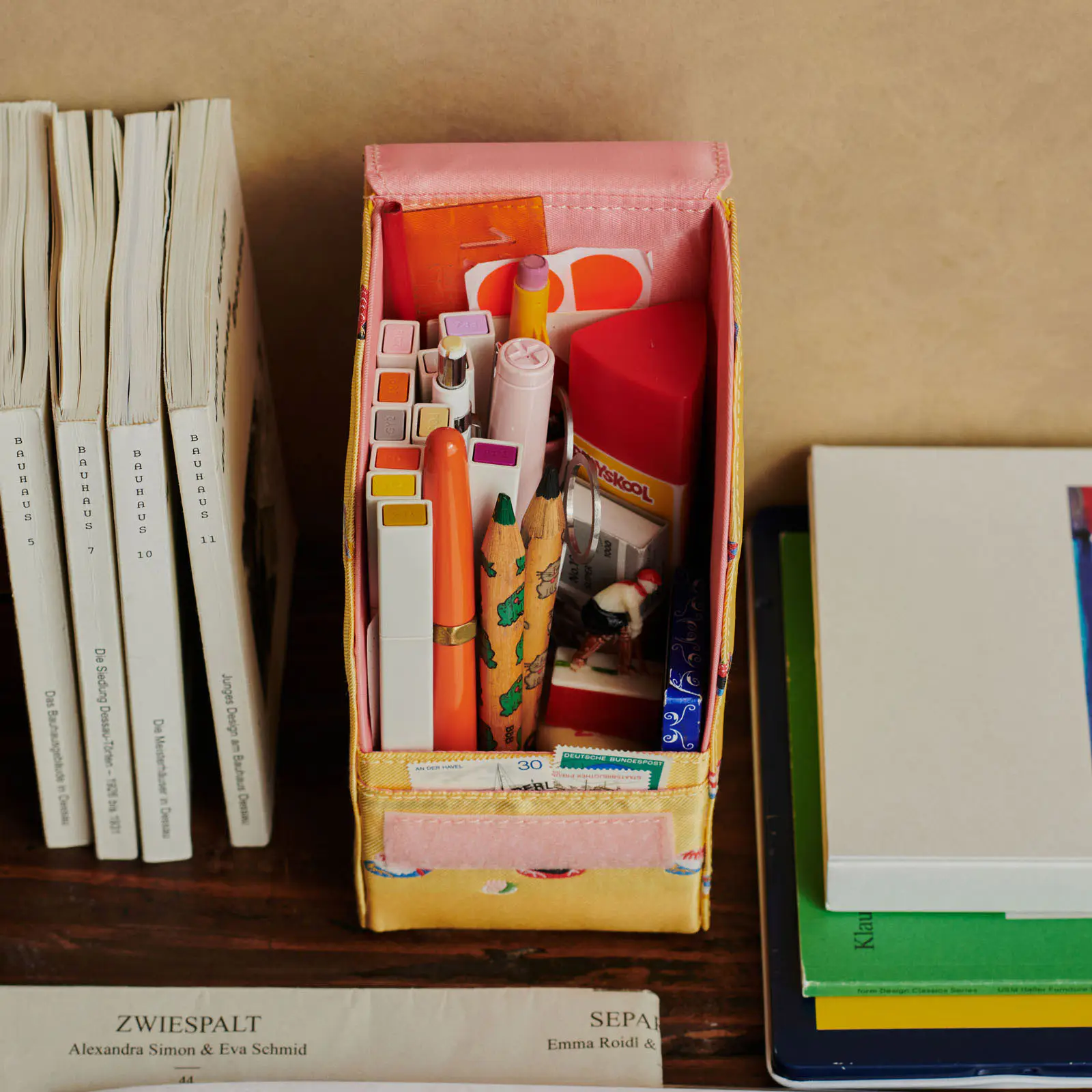 中面にはペンや定規など、