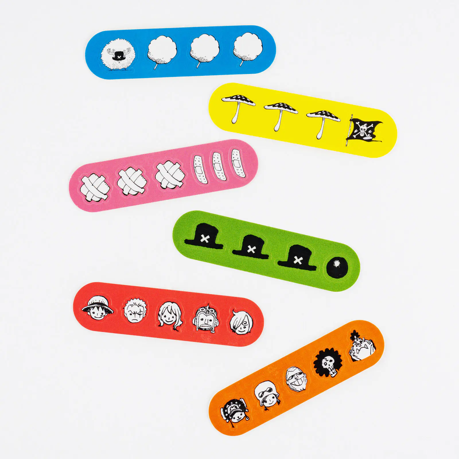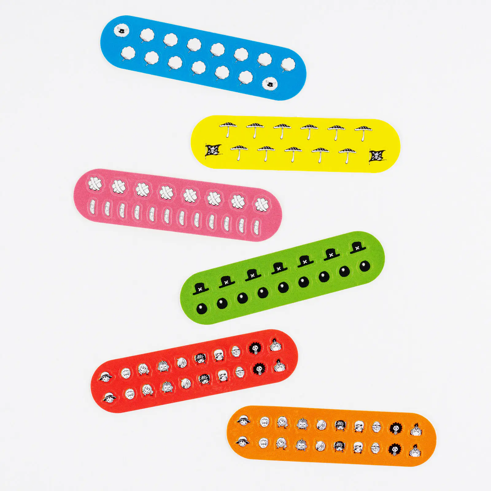 麦わらの一味の顔などさまざまなデザインのシールが、