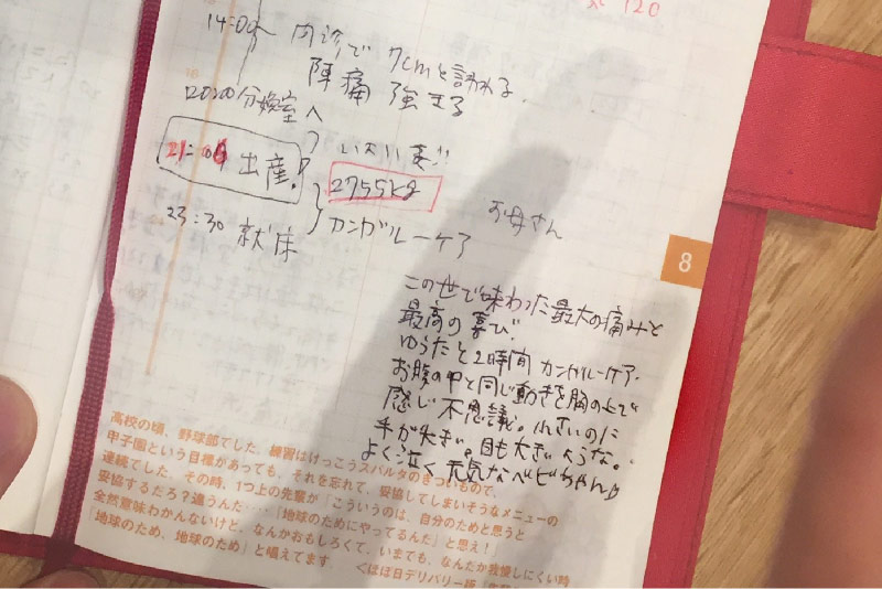出産の記録が書かれたページ。