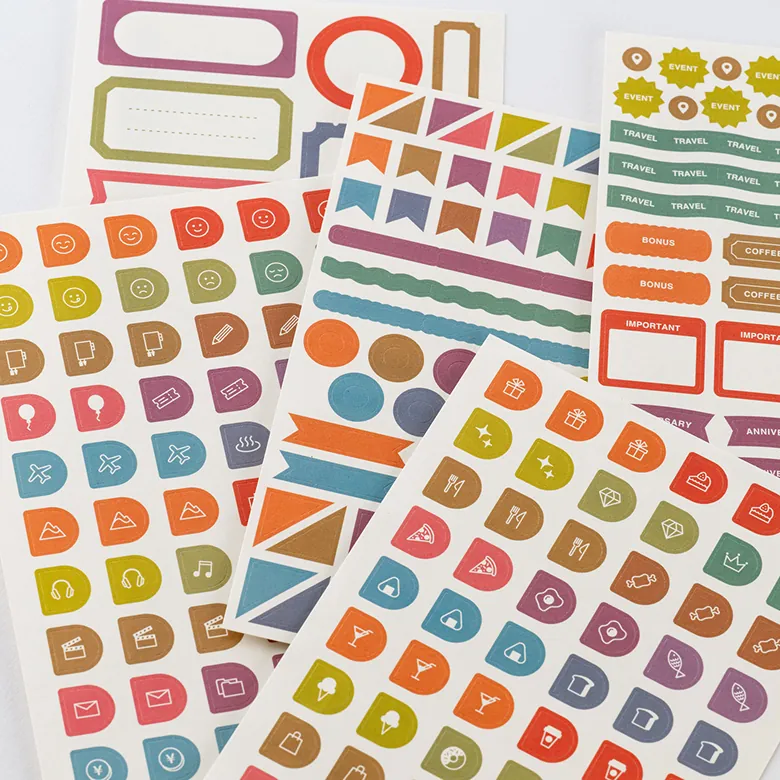 月間ページや1日ページに貼って予定を目立たせたり、飾ったりすることができるシール。