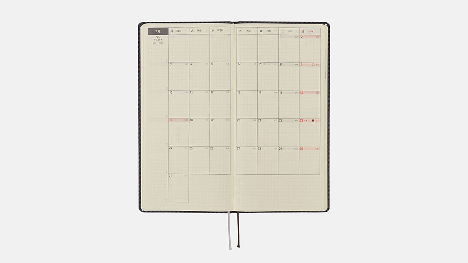 祝日、記念日など(バレンタインデー、ひなまつり、母の日、父の日など)/月の満ち欠け(1日ページ全ページに記載・月間カレンダーに満月と新月のみ記載)