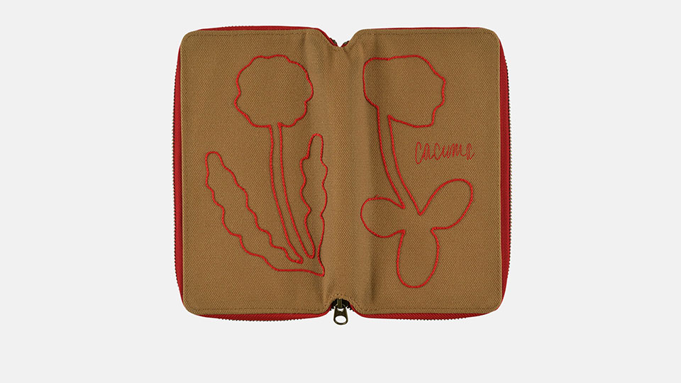 厚みのある帆布生地や刺繍部分の手ざわりを、