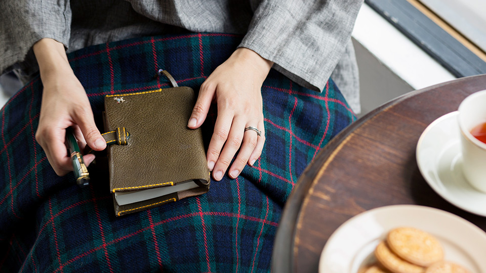 このカバーをつけた手帳も