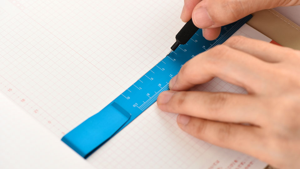 薄くて軽い、アルミ製の定規です。