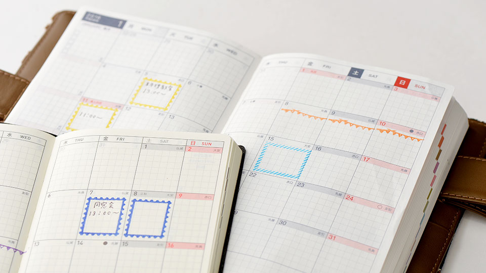 ほぼ日手帳オリジナルの月間カレンダーのマスに
